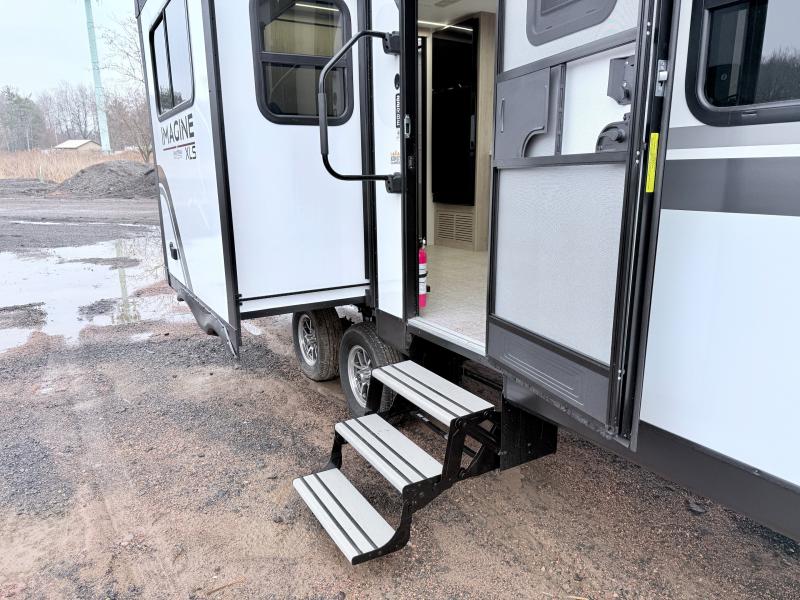 Let your imagination run wild with the possibilities that the Grand Design Imagine XLS travel trailer can provide! The Imagine XLS has been built with oversized tank capacities, an extra-large 2" fresh water drain valve, a ducted A/C system, a power tongue jack, and a heated and enclosed underbelly with suspended tanks. There is a designated heat duct to the subfloor and a residential ductless heating system throughout. For outdoor adventures, the electric awning with LED lights will enable you to stay protected, and the Tuff-Ply pass-thru flooring will withstand your many adventures. You will also love the XLS Solar Package that comes with a 180W roof mounted solar panel, a 40 Amp charge controller, a 12V 10 cu. ft. refrigerator, and roof mounted quick connect plugs!