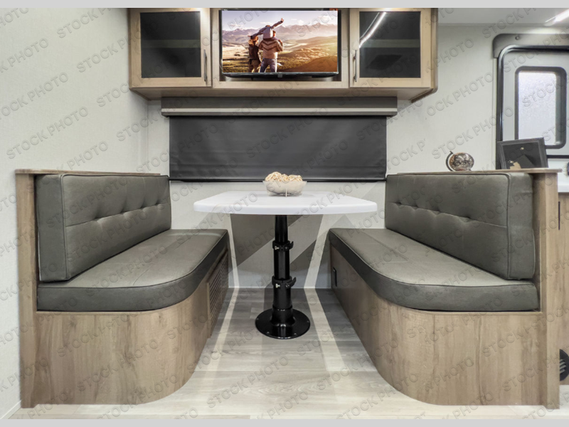 Treat yourself to a weekend of fun in this Imagine XLS travel trailer! Whether it's just you and your spouse, or you've chosen to bring along a group of friends, this trailer will meet the need. The front bedroom can sleep two people on the walk-around queen-size bed. The bedroom is quite functional because it not only contains the second exterior entry door, but it also has a private entrance into the walk-through bathroom since it is located on the other side of the bathroom. The booth dinette is functional too because it can transform from a dining location into a sleeping location, and the theater seating is directly across from the LED TV for easy viewing.