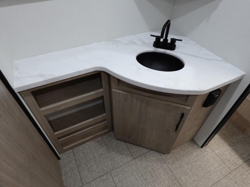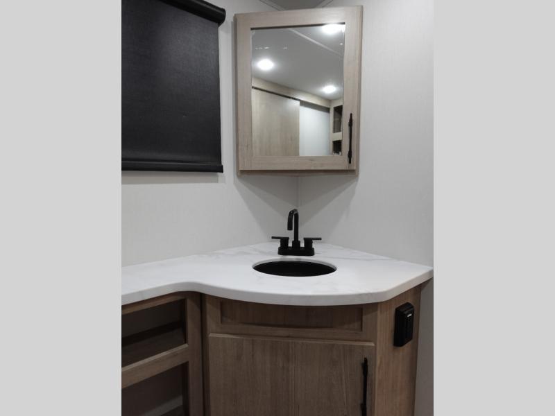 Treat yourself to a weekend of fun in this Imagine XLS travel trailer! Whether it's just you and your spouse, or you've chosen to bring along a group of friends, this trailer will meet the need. The front bedroom can sleep two people on the walk-around queen-size bed. The bedroom is quite functional because it not only contains the second exterior entry door, but it also has a private entrance into the walk-through bathroom since it is located on the other side of the bathroom. The booth dinette is functional too because it can transform from a dining location into a sleeping location, and the theater seating is directly across from the LED TV for easy viewing.