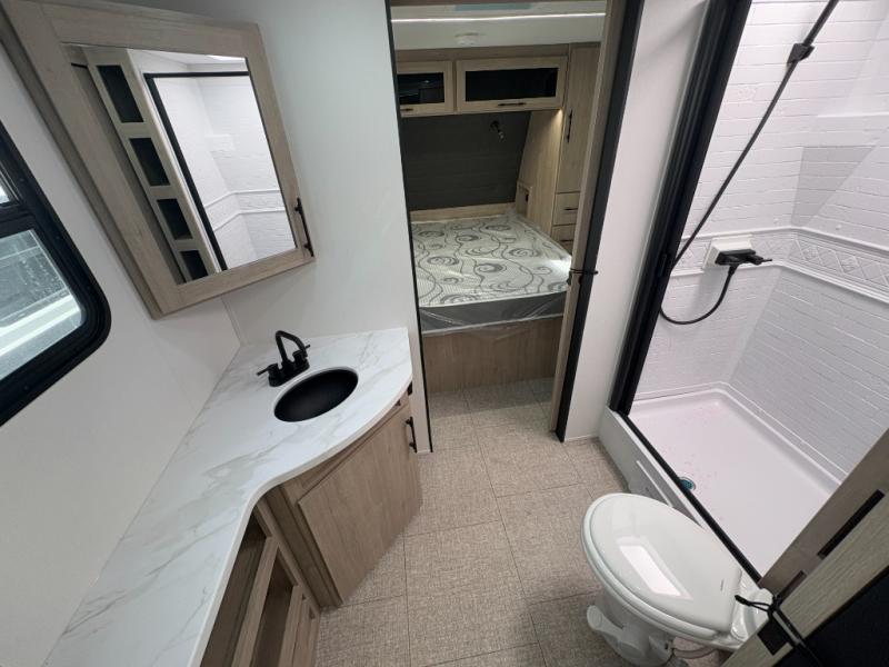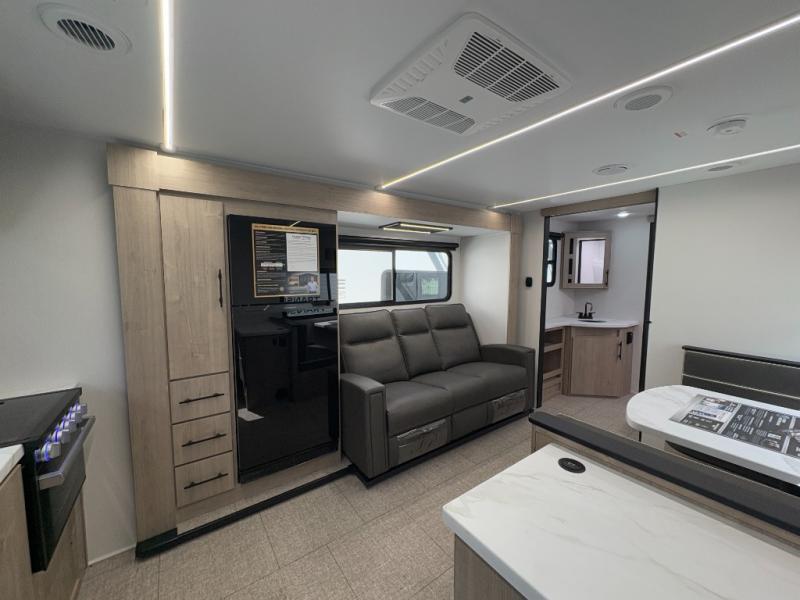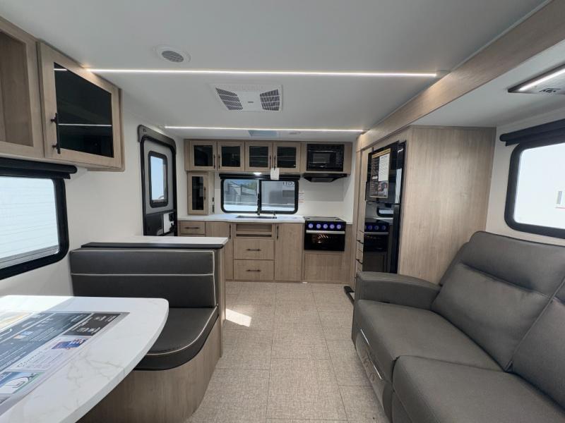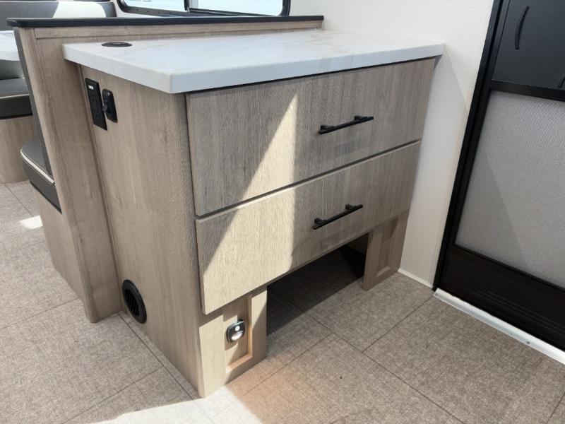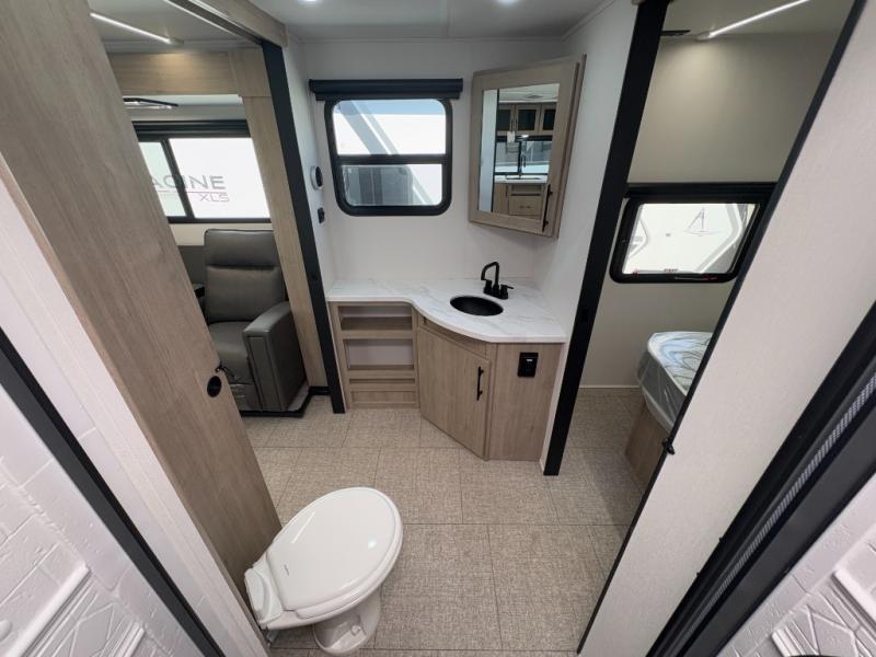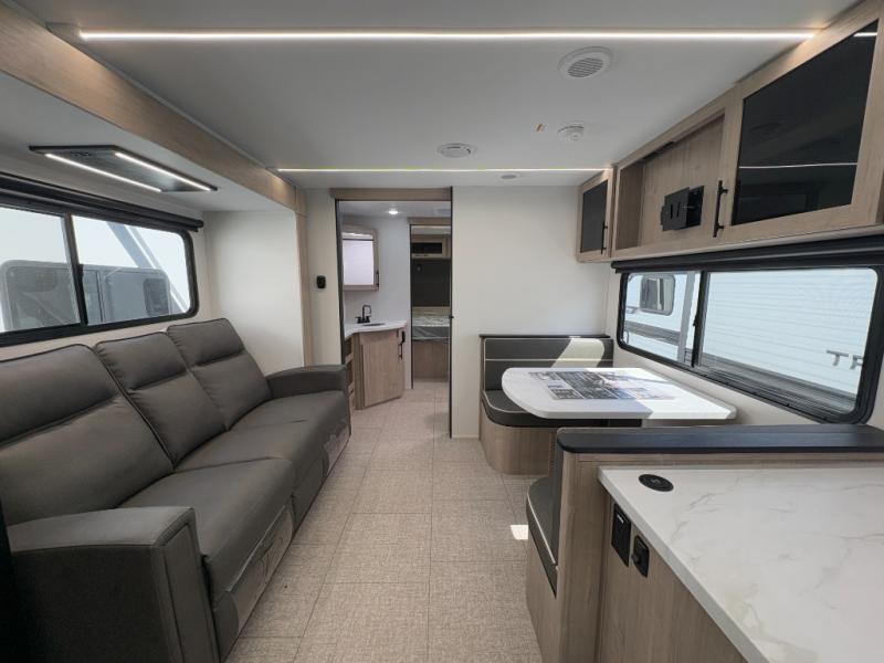 Step inside the Imagine XLS 23LDE and enjoy a well-designed layout that maximizes space and convenience. The private front bedroom features a walk-around queen bed, dual entry doors, and a private access point to the walk-through bathroom. The spacious slide-out opens up the living area, where the booth dinette doubles as additional sleeping space. Relax in the theater seating positioned directly across from the LED TV for the ultimate entertainment experience.