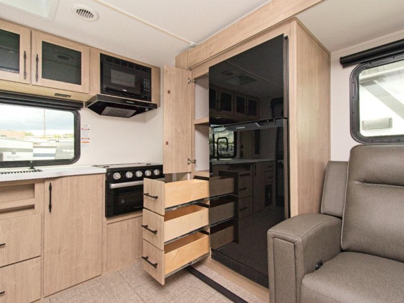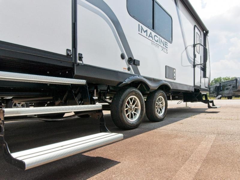 Built for Adventure: The Imagine XLS is designed for durability and convenience, featuring oversized tank capacities, a ducted A/C system, a power tongue jack, and a heated, enclosed underbelly with suspended tanks. Stay comfortable with a designated heat duct to the subfloor and a residential ductless heating system. The electric awning with LED lights and Tuff-Ply pass-thru flooring ensure you can enjoy the outdoors in any condition. Plus, the XLS Solar Package, including a 180W roof-mounted solar panel and a 12V 10 cu. ft. refrigerator, keeps you powered up and ready for any adventure.