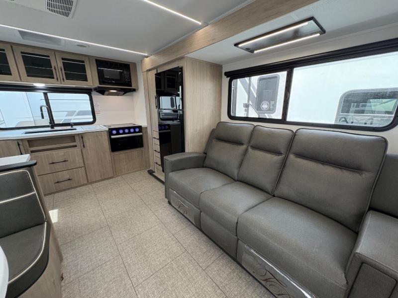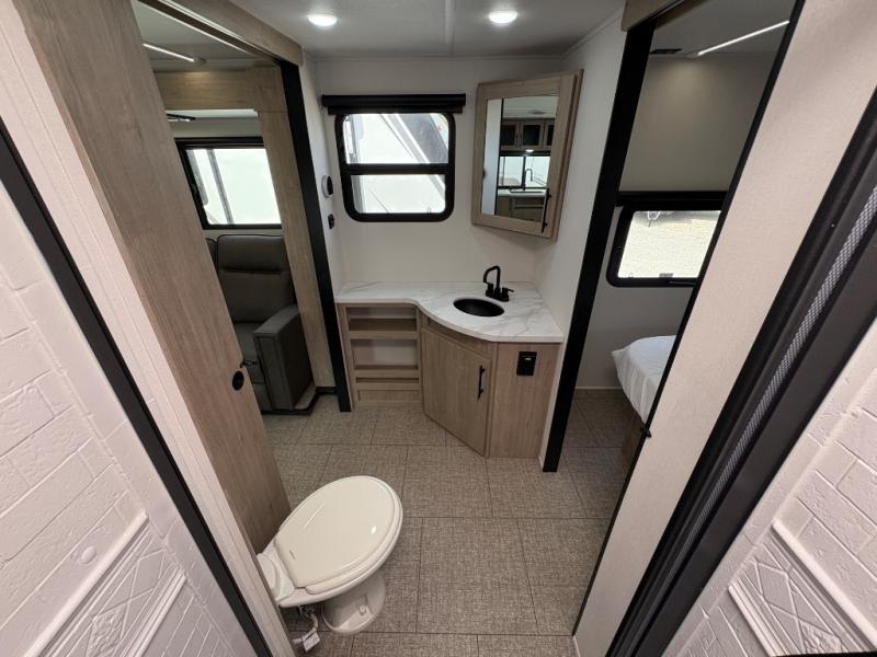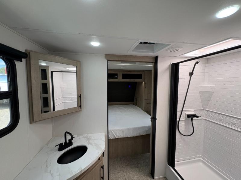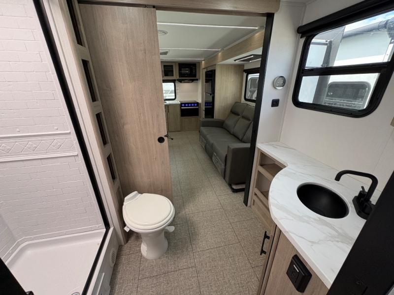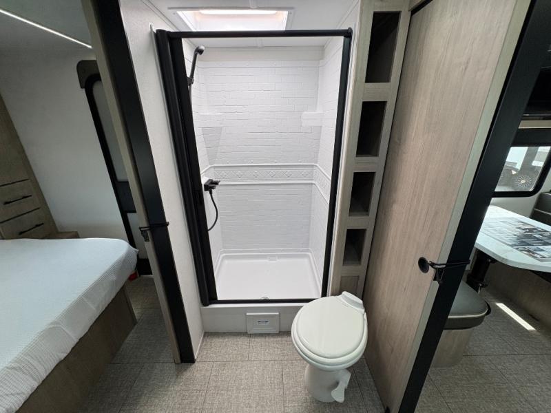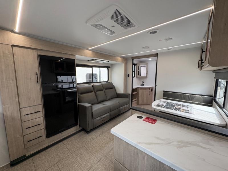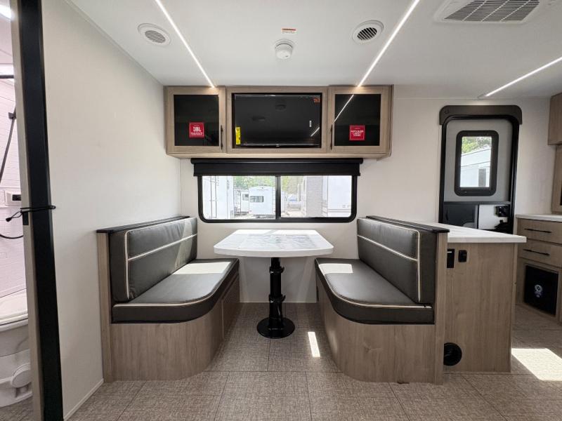 Step inside the Imagine XLS 23LDE and enjoy a well-designed layout that maximizes space and convenience. The private front bedroom features a walk-around queen bed, dual entry doors, and a private access point to the walk-through bathroom. The spacious slide-out opens up the living area, where the booth dinette doubles as additional sleeping space. Relax in the theater seating positioned directly across from the LED TV for the ultimate entertainment experience.