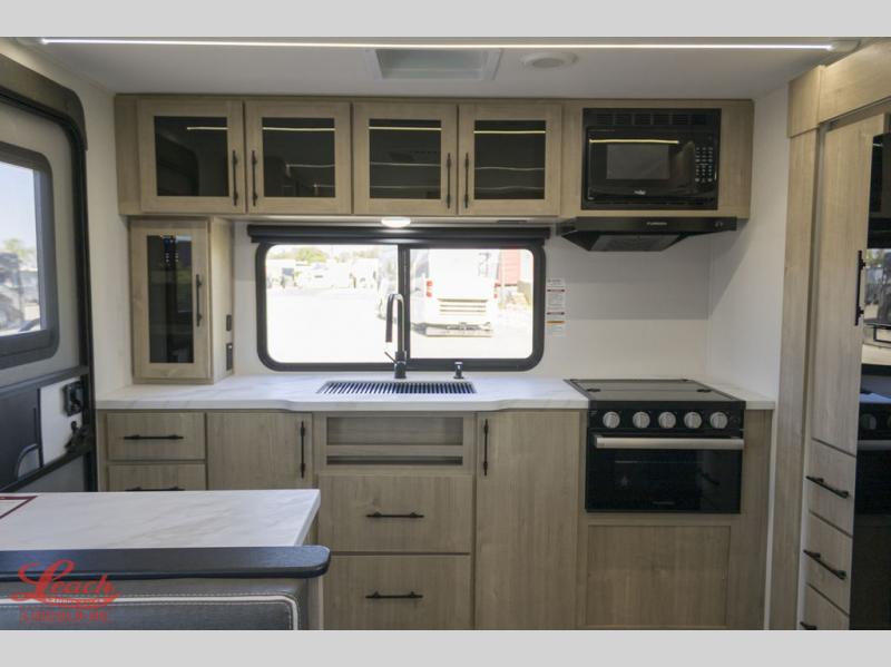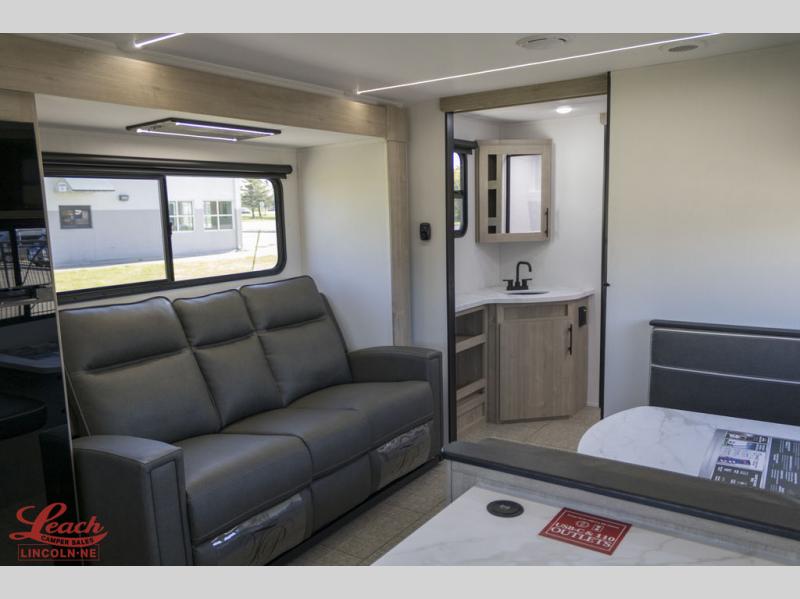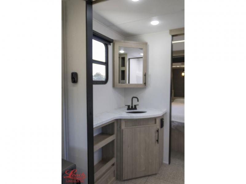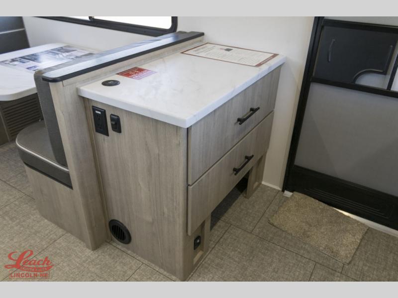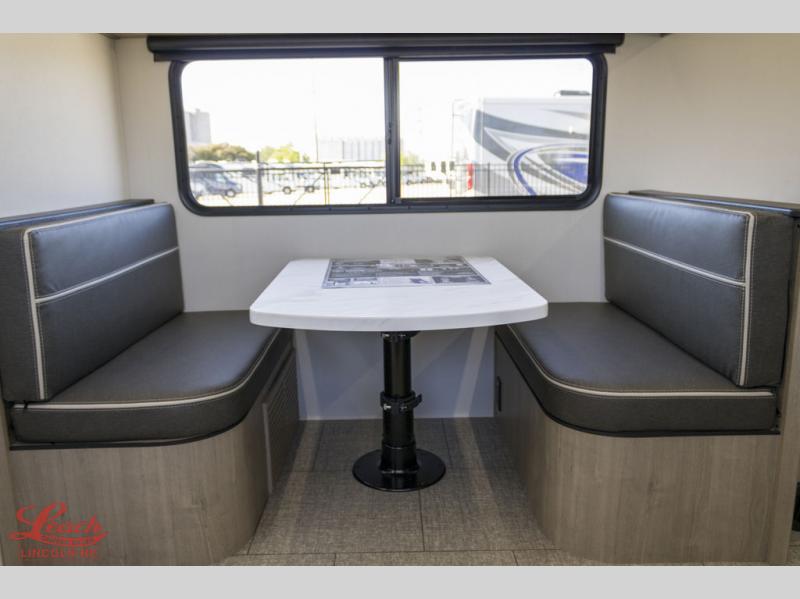 Treat yourself to a weekend of fun in this Imagine XLS travel trailer! Whether it's just you and your spouse, or you've chosen to bring along a group of friends, this trailer will meet the need. The front bedroom can sleep two people on the walk-around queen-size bed. The bedroom is quite functional because it not only contains the second exterior entry door, but it also has a private entrance into the walk-through bathroom since it is located on the other side of the bathroom. The booth dinette is functional too because it can transform from a dining location into a sleeping location, and the theater seating is directly across from the LED TV for easy viewing.
