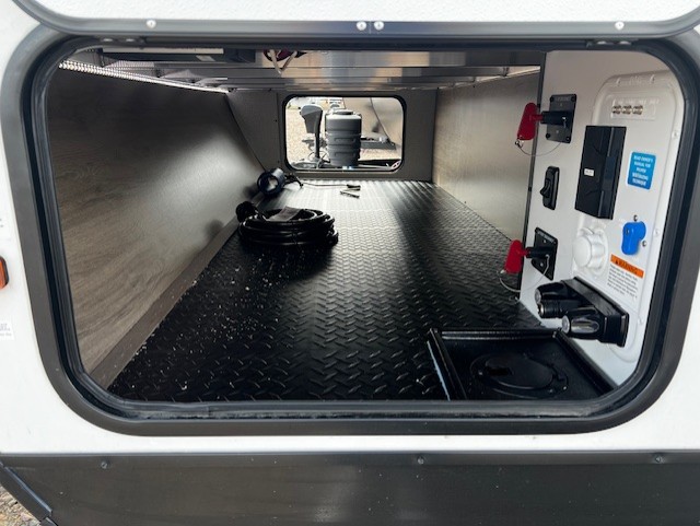 The dual entry doors make it easy to enter and exit this travel trailer! You will find a walk-around queen-size bed up front in the private bedroom, and one of the entry/exit doors to the unit so you can quietly slip out for an early morning fishing trip. The U-shaped dinette is right next to the window, so you can look out at your surroundings while you enjoy breakfast. The double-size bunks have some privacy curtains, and the bunks are right next to the full bathroom for easy access in the middle of the night. The fully equipped kitchen has everything you need to get dinner in the oven, and you can have some more prep space by using the flip-up countertop extension. You even have an outdoor griddle and an outdoor 1.6 cu. ft. refrigerator to enjoy a cold beverage while you cook under the 22' electric awning!