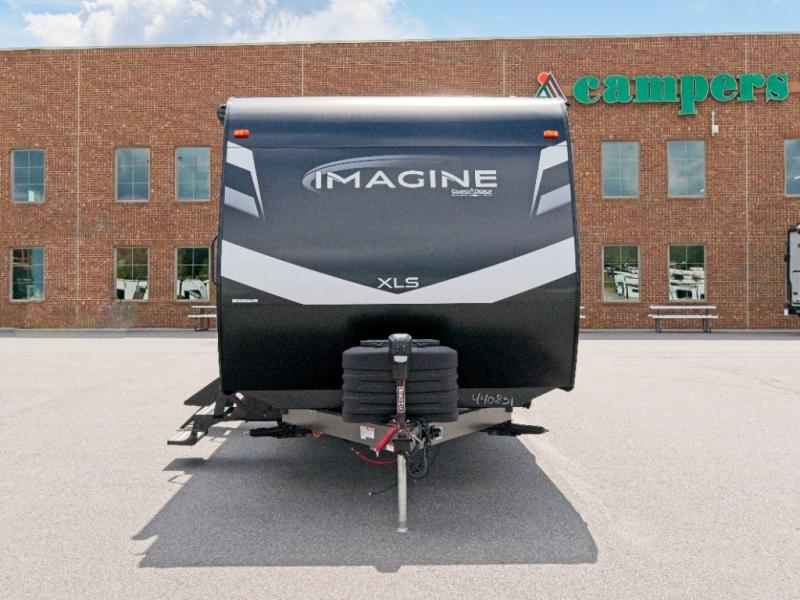 The Grand Design Imagine XLS 25DBE travel trailer is ideal for families or small groups seeking comfort and convenience on the road. With double-size bunks that offer privacy curtains, it's a perfect spot for kids or guests. The private front bedroom features a walk-around queen-size bed and one of the dual entry doors, making it easy to sneak out for an early morning fishing trip.