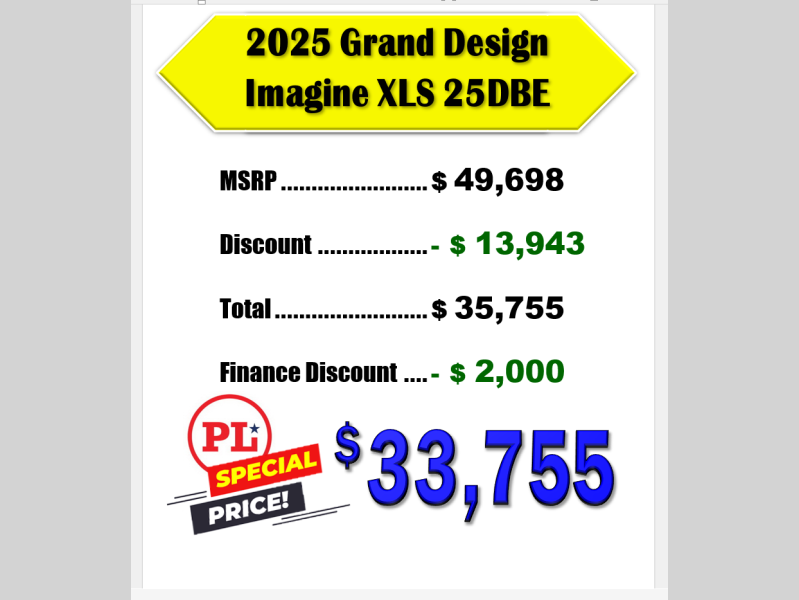 New 2025 Grand Design Imagine XLS 25DBE Travel Trailer