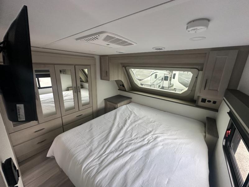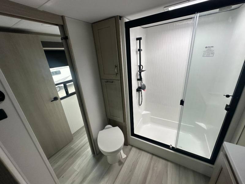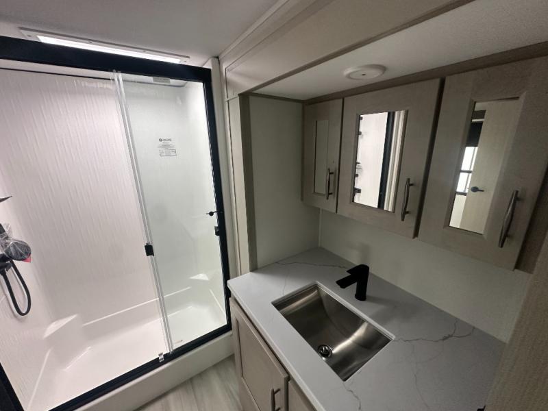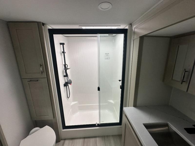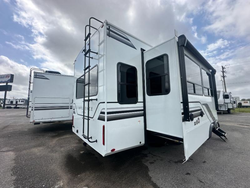 Any Grand Design Influence fifth wheel features five-sided aluminum cage construction with a walk-on roof and a fully enclosed underbelly with heated tanks and storage for all weather camping. For peace of mind, the MORryde CRE3000 Suspension system will provide safe and smooth towing, and the 101" widebody construction offers all the room you need and that is before multiple slides are fully engaged. You will appreciate the Keyed-Alike locks, slam-latch baggage doors with magnetic door catches, exterior security light, and SolidStep entry steps. On the inside, Congoleum flooring, premium roller shades for privacy, a hallway handrail for safety, and nightstands with USB ports to keep all of your electronics fully charged. You will also love the on demand tankless water heater when showering, plus the added heat and ambiance from an electric fireplace, and so much more!
