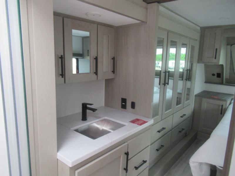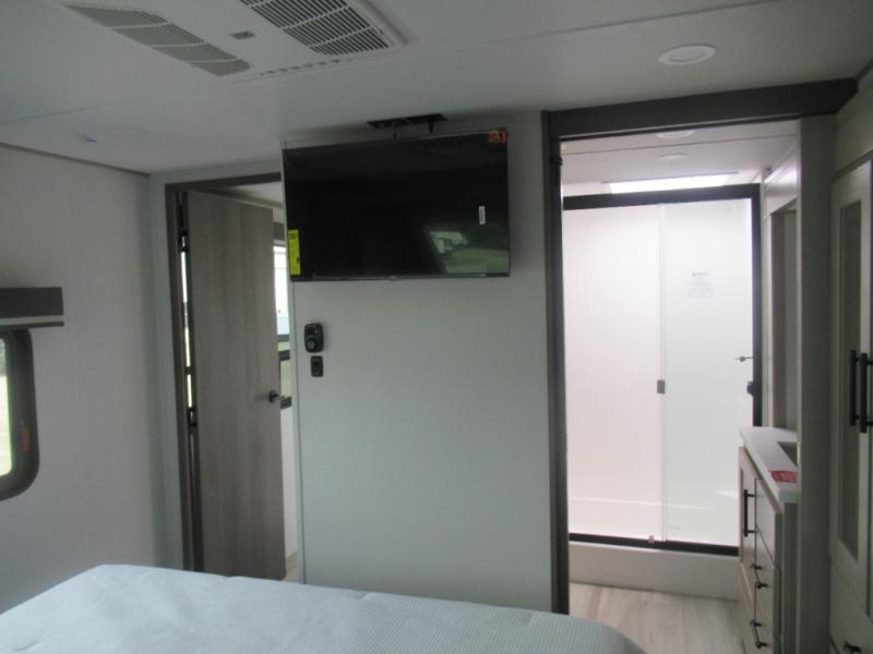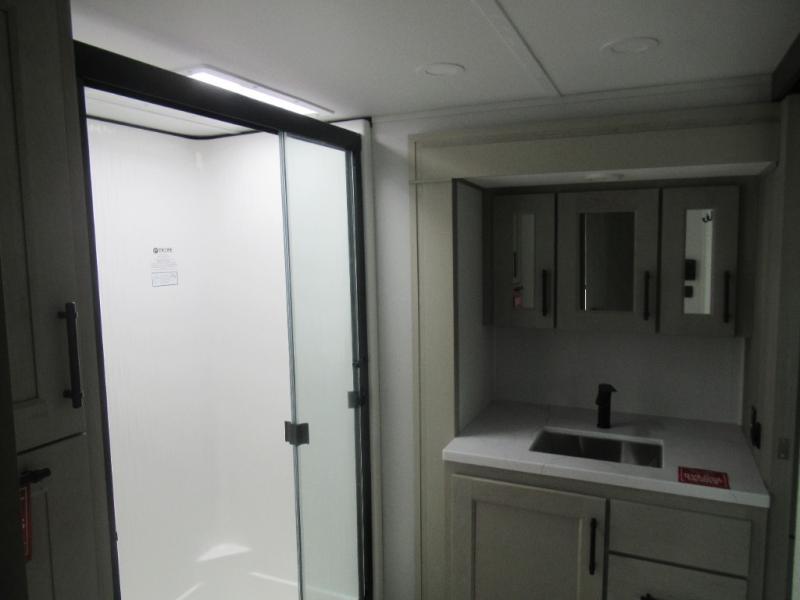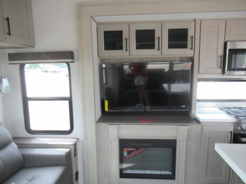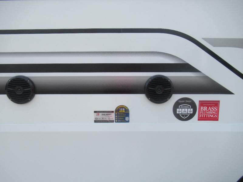 Any Grand Design Influence fifth wheel features five-sided aluminum cage construction with a walk-on roof and a fully enclosed underbelly with heated tanks and storage for all weather camping. For peace of mind, the MORryde CRE3000 Suspension system will provide safe and smooth towing, and the 101" widebody construction offers all the room you need and that is before multiple slides are fully engaged. You will appreciate the Keyed-Alike locks, slam-latch baggage doors with magnetic door catches, exterior security light, and SolidStep entry steps. On the inside, Congoleum flooring, premium roller shades for privacy, a hallway handrail for safety, and nightstands with USB ports to keep all of your electronics fully charged. You will also love the on demand tankless water heater when showering, plus the added heat and ambiance from an electric fireplace, and so much more!