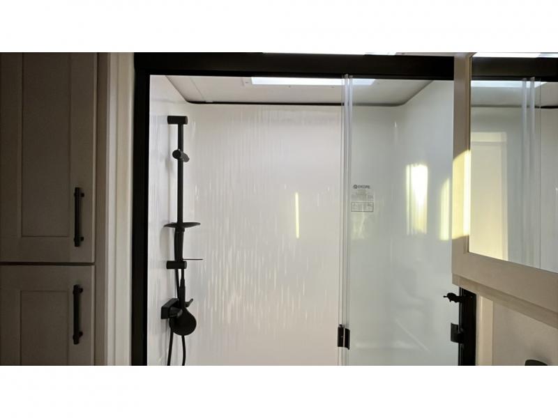 Any Grand Design Influence fifth wheel features five-sided aluminum cage construction with a walk-on roof and a fully enclosed underbelly with heated tanks and storage for all weather camping. For peace of mind, the MORryde CRE3000 Suspension system will provide safe and smooth towing, and the 101" widebody construction offers all the room you need and that is before multiple slides are fully engaged. You will appreciate the Keyed-Alike locks, slam-latch baggage doors with magnetic door catches, exterior security light, and SolidStep entry steps. On the inside, Congoleum flooring, premium roller shades for privacy, a hallway handrail for safety, and nightstands with USB ports to keep all of your electronics fully charged. You will also love the On Demand tankless water heater when showering, plus the added heat and ambiance from an electric fireplace, and so much more!