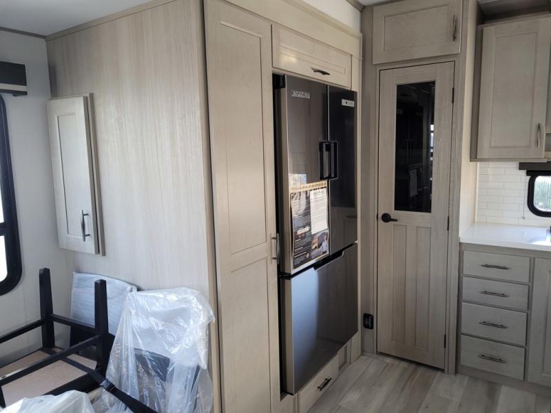 Any Grand Design Influence fifth wheel features five-sided aluminum cage construction with a walk-on roof and a fully enclosed underbelly with heated tanks and storage for all weather camping. For peace of mind, the MORryde CRE3000 Suspension system will provide safe and smooth towing, and the 101" widebody construction offers all the room you need and that is before multiple slides are fully engaged. You will appreciate the Keyed-Alike locks, slam-latch baggage doors with magnetic door catches, exterior security light, and SolidStep entry steps. On the inside, Congoleum flooring, premium roller shades for privacy, a hallway handrail for safety, and nightstands with USB ports to keep all of your electronics fully charged. You will also love the On Demand tankless water heater when showering, plus the added heat and ambiance from an electric fireplace, and so much more!