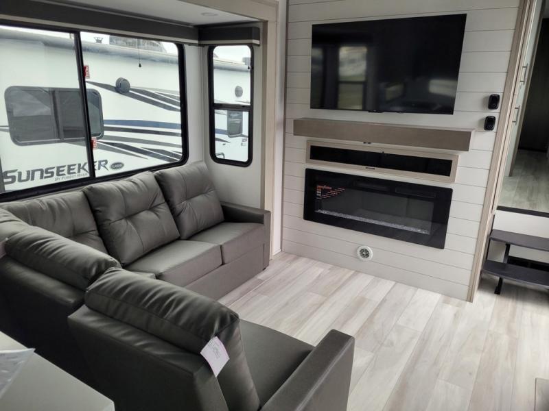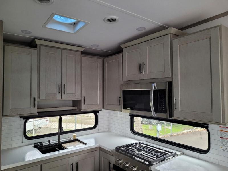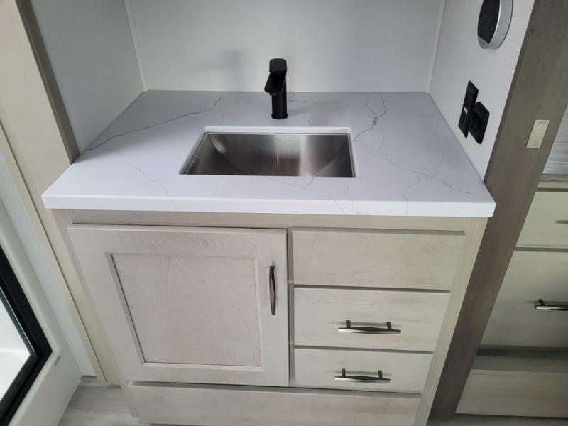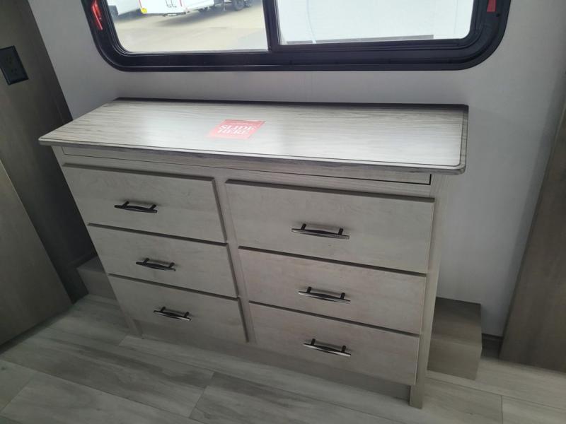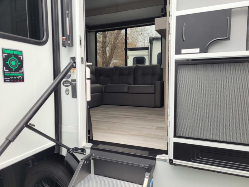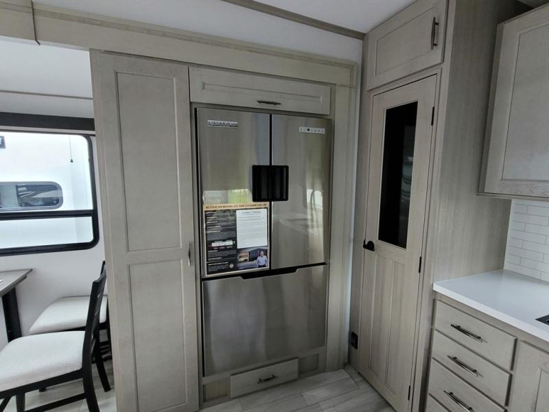 Any Grand Design Influence fifth wheel features five-sided aluminum cage construction with a walk-on roof and a fully enclosed underbelly with heated tanks and storage for all weather camping. For peace of mind, the MORryde CRE3000 Suspension system will provide safe and smooth towing, and the 101" widebody construction offers all the room you need and that is before multiple slides are fully engaged. You will appreciate the Keyed-Alike locks, slam-latch baggage doors with magnetic door catches, exterior security light, and SolidStep entry steps. On the inside, Congoleum flooring, premium roller shades for privacy, a hallway handrail for safety, and nightstands with USB ports to keep all of your electronics fully charged. You will also love the On Demand tankless water heater when showering, plus the added heat and ambiance from an electric fireplace, and so much more!