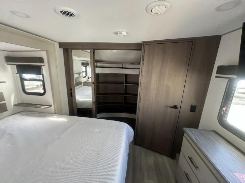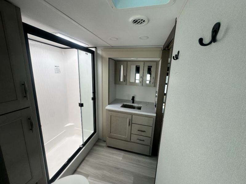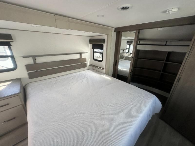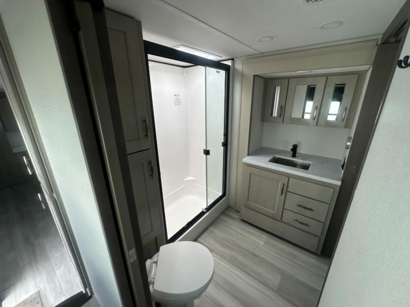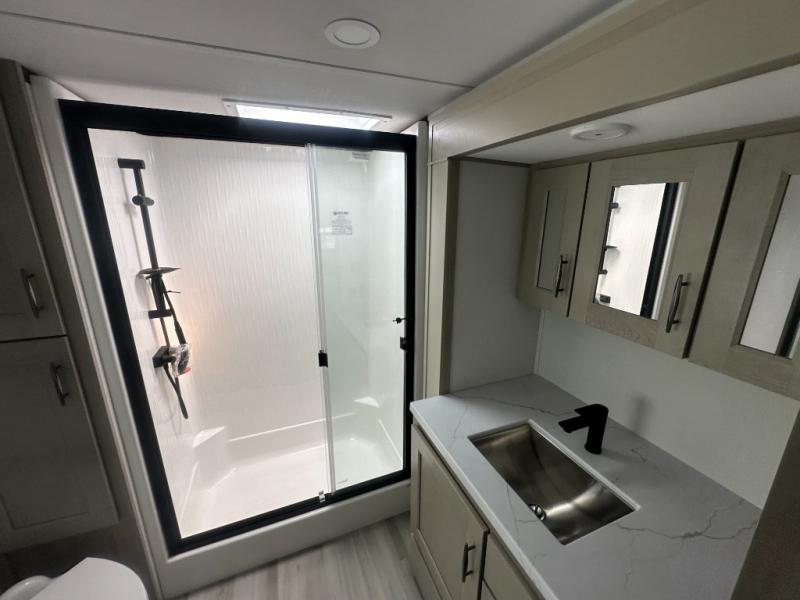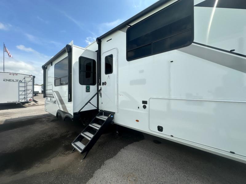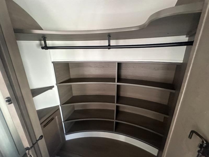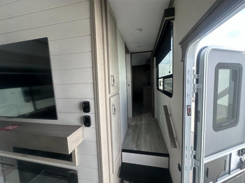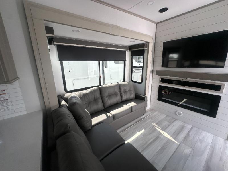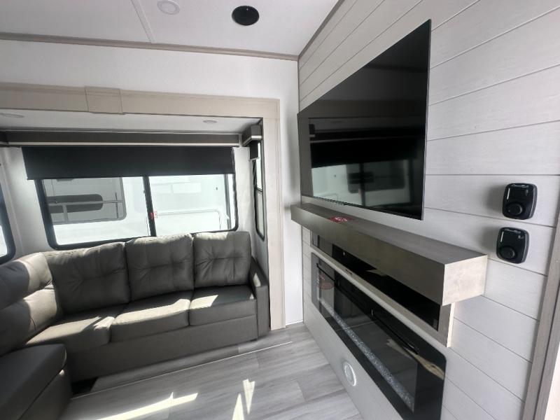Any Grand Design Influence fifth wheel features five-sided aluminum cage construction with a walk-on roof and a fully enclosed underbelly with heated tanks and storage for all weather camping. For peace of mind, the MORryde CRE3000 Suspension system will provide safe and smooth towing, and the 101" widebody construction offers all the room you need and that is before multiple slides are fully engaged. You will appreciate the Keyed-Alike locks, slam-latch baggage doors with magnetic door catches, exterior security light, and SolidStep entry steps. On the inside, Congoleum flooring, premium roller shades for privacy, a hallway handrail for safety, and nightstands with USB ports to keep all of your electronics fully charged. You will also love the On Demand tankless water heater when showering, plus the added heat and ambiance from an electric fireplace, and so much more!