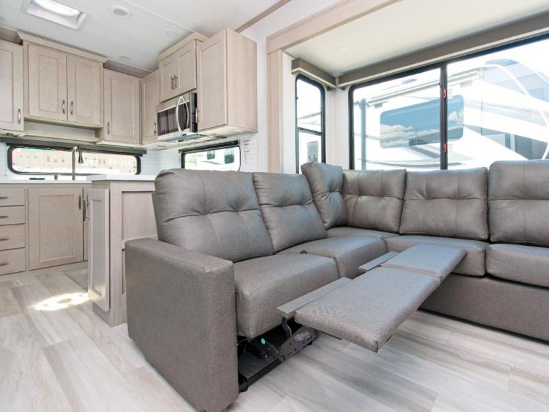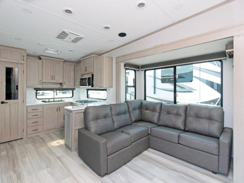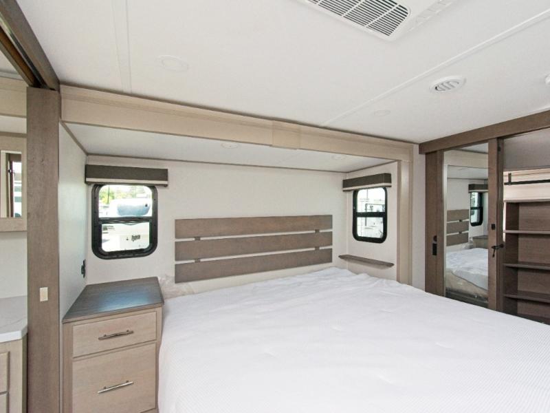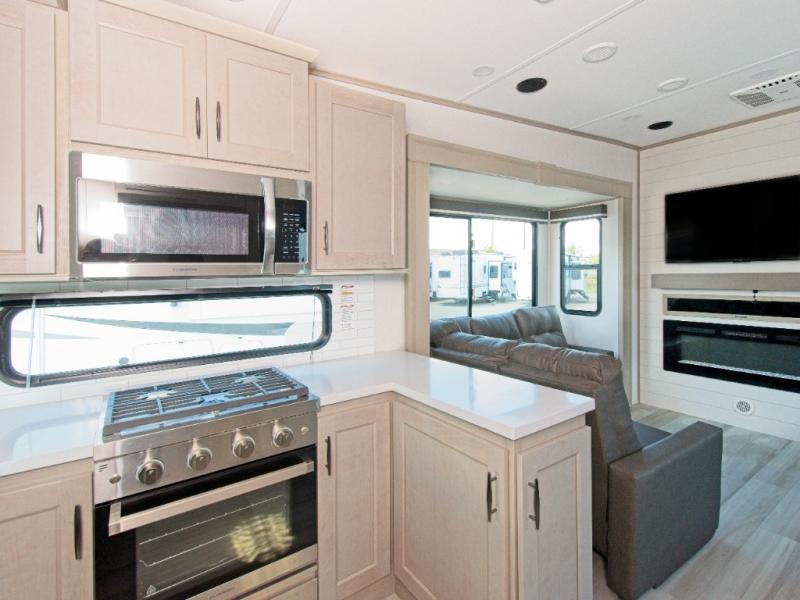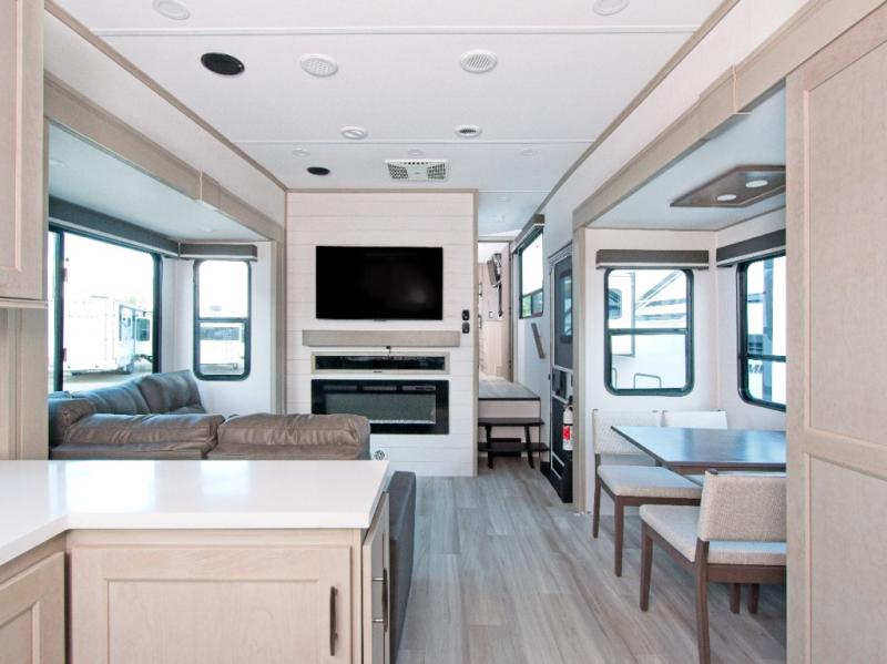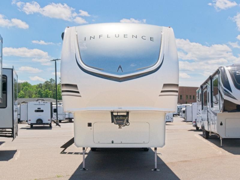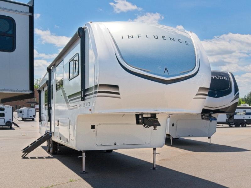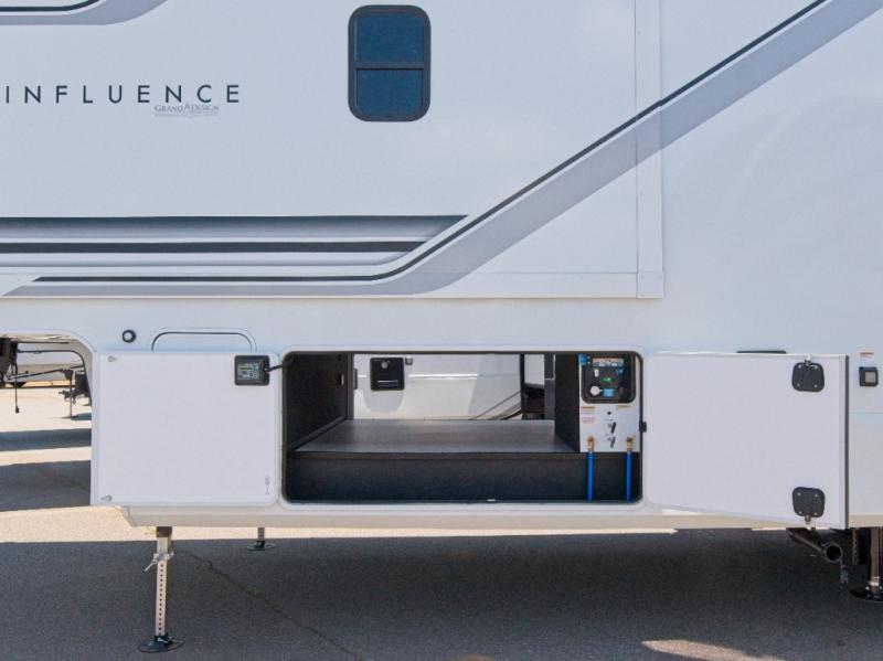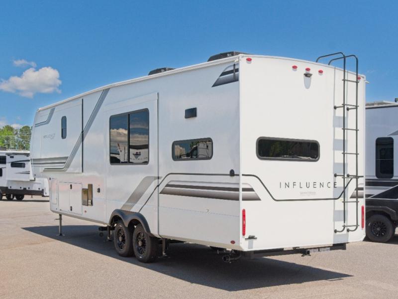 Experience ultimate comfort and convenience with the Grand Design Influence fifth wheel, featuring a luxurious master bedroom and a chef's dream rear kitchen!