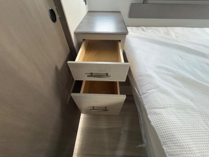 Luxurious Bedroom: The front bedroom features a 60" x 80" queen bed (with an optional king bed), a dresser with hidden storage, nightstands with USB ports, and a wardrobe with mirrored doors.?