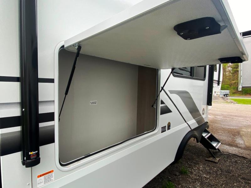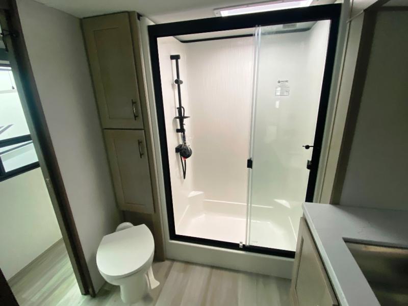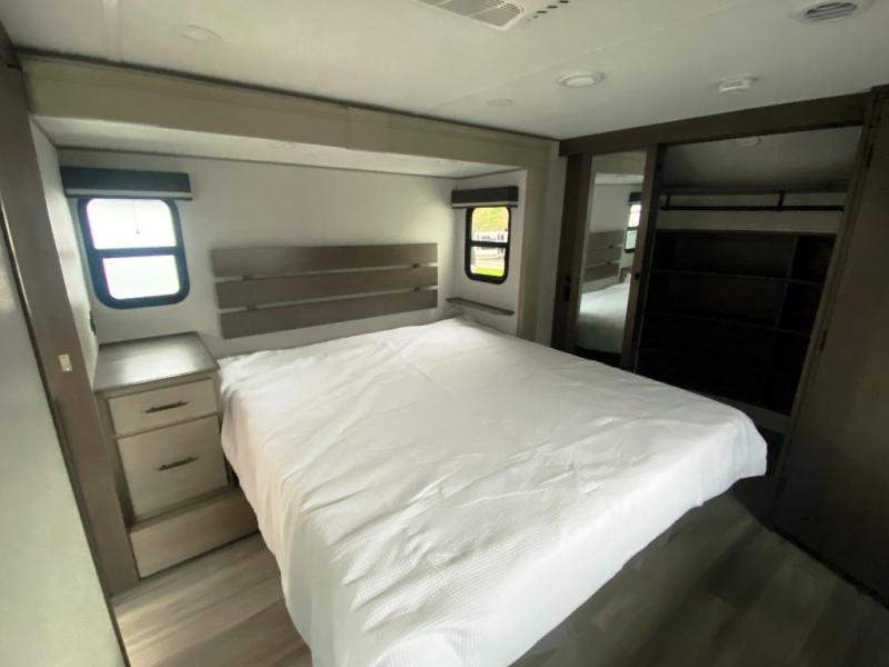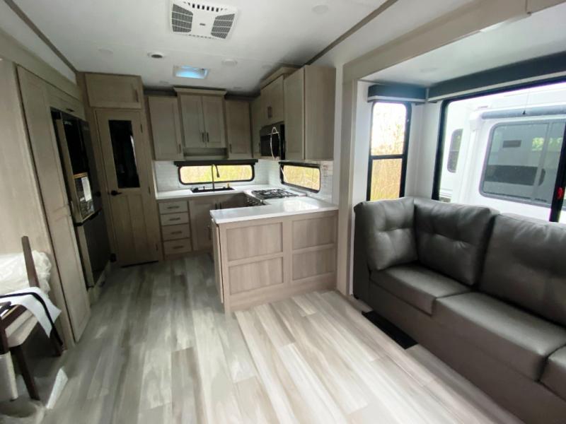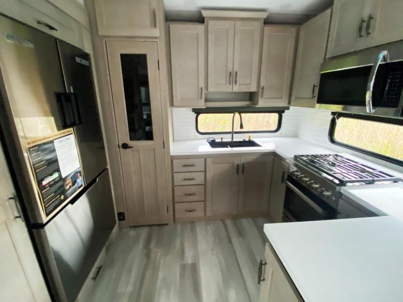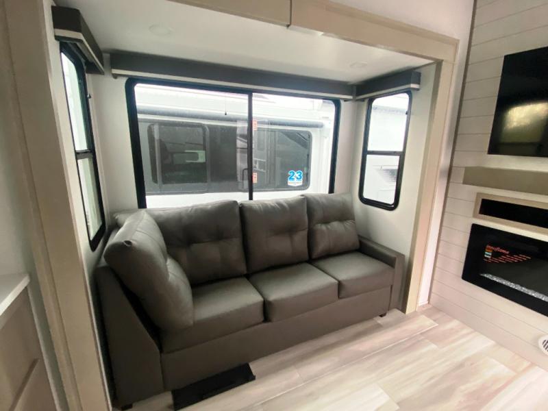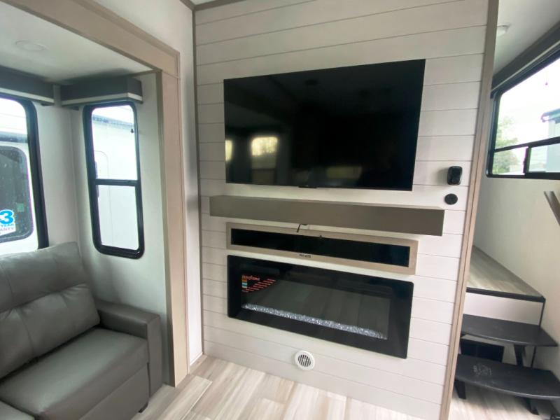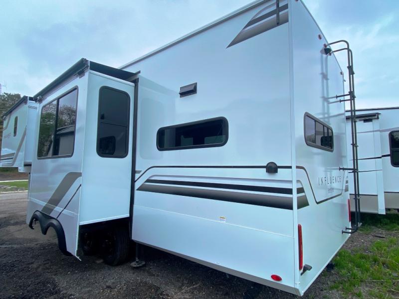 Any Grand Design Influence fifth wheel features five-sided aluminum cage construction with a walk-on roof and a fully enclosed underbelly with heated tanks and storage for all weather camping. For peace of mind, the MORryde CRE3000 Suspension system will provide safe and smooth towing, and the 101" widebody construction offers all the room you need and that is before multiple slides are fully engaged. You will appreciate the Keyed-Alike locks, slam-latch baggage doors with magnetic door catches, exterior security light, and SolidStep entry steps. On the inside, Congoleum flooring, premium roller shades for privacy, a hallway handrail for safety, and nightstands with USB ports to keep all of your electronics fully charged. You will also love the On Demand tankless water heater when showering, plus the added heat and ambiance from an electric fireplace, and so much more!