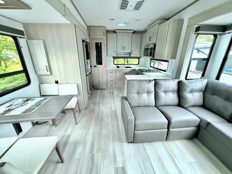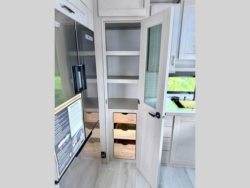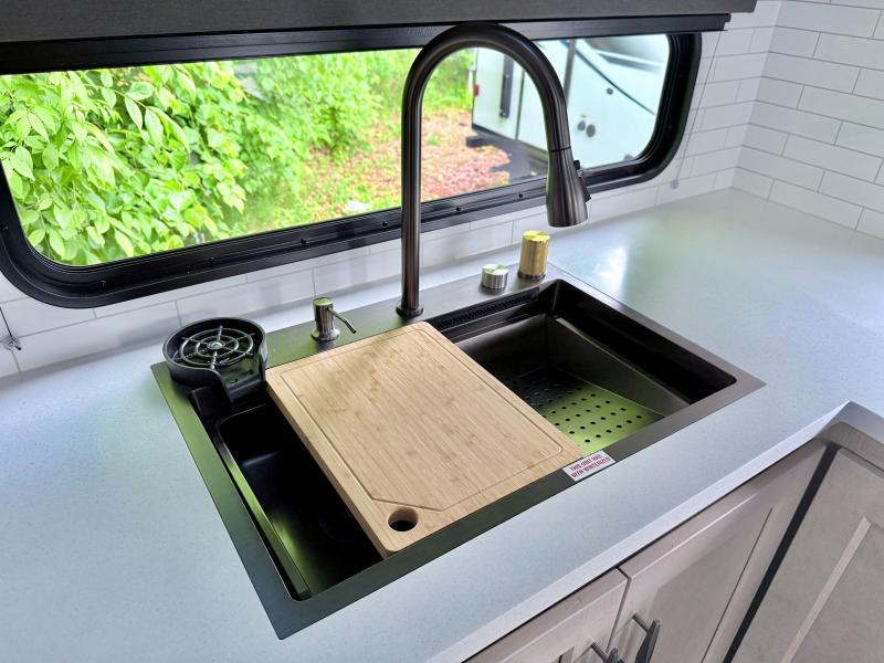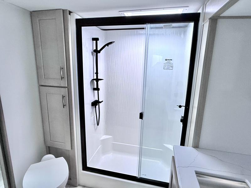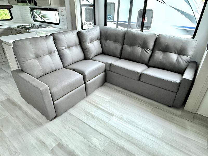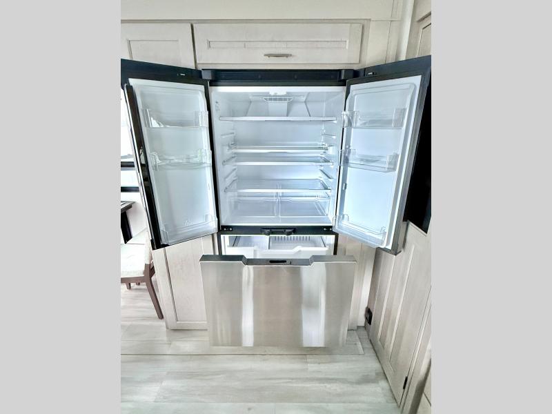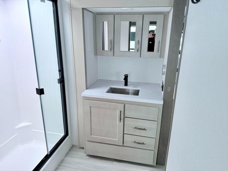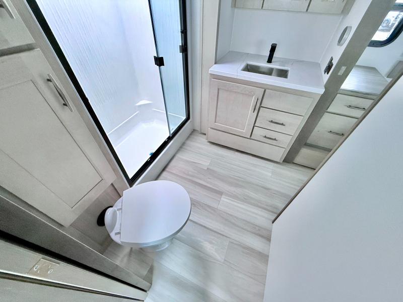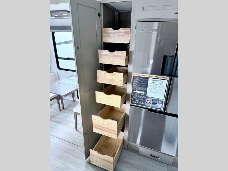 Any Grand Design Influence fifth wheel features five-sided aluminum cage construction with a walk-on roof and a fully enclosed underbelly with heated tanks and storage for all weather camping. For peace of mind, the MORryde CRE3000 Suspension system will provide safe and smooth towing, and the 101" widebody construction offers all the room you need and that is before multiple slides are fully engaged. You will appreciate the Keyed-Alike locks, slam-latch baggage doors with magnetic door catches, exterior security light, and SolidStep entry steps. On the inside, Congoleum flooring, premium roller shades for privacy, a hallway handrail for safety, and nightstands with USB ports to keep all of your electronics fully charged. You will also love the On Demand tankless water heater when showering, plus the added heat and ambiance from an electric fireplace, and so much more!