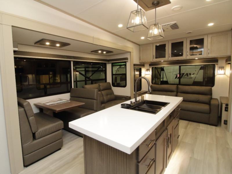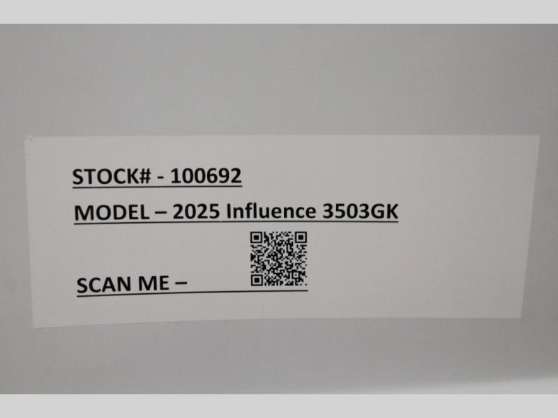 Discover the pinnacle of luxury and innovation with the all-new 2025 Grand Design Influence 3503GK. This fifth wheel seamlessly blends modern amenities with superior craftsmanship, ensuring an unparalleled RVing experience for couples and families alike.