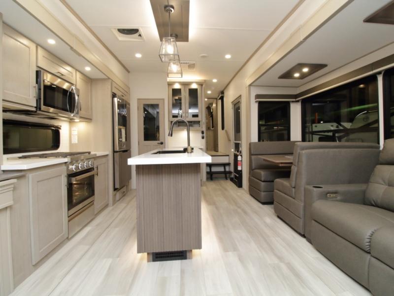 Modern Kitchen: Equipped with state-of-the-art appliances, the kitchen ensures you can prepare meals with ease, bringing the comforts of home on the road.