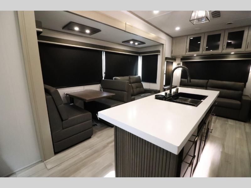 Modern Kitchen: Equipped with state-of-the-art appliances, the kitchen ensures you can prepare meals with ease, bringing the comforts of home on the road.
