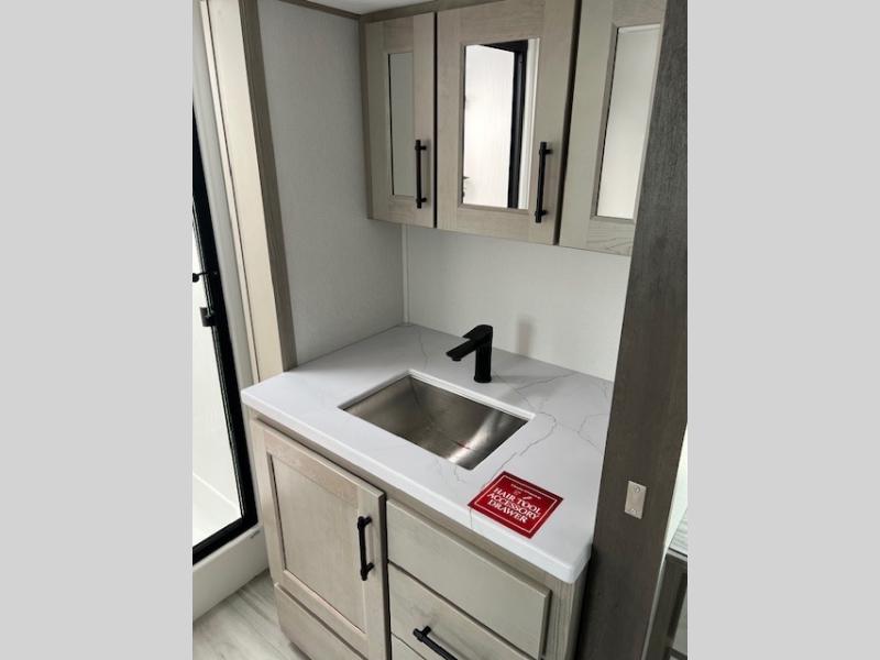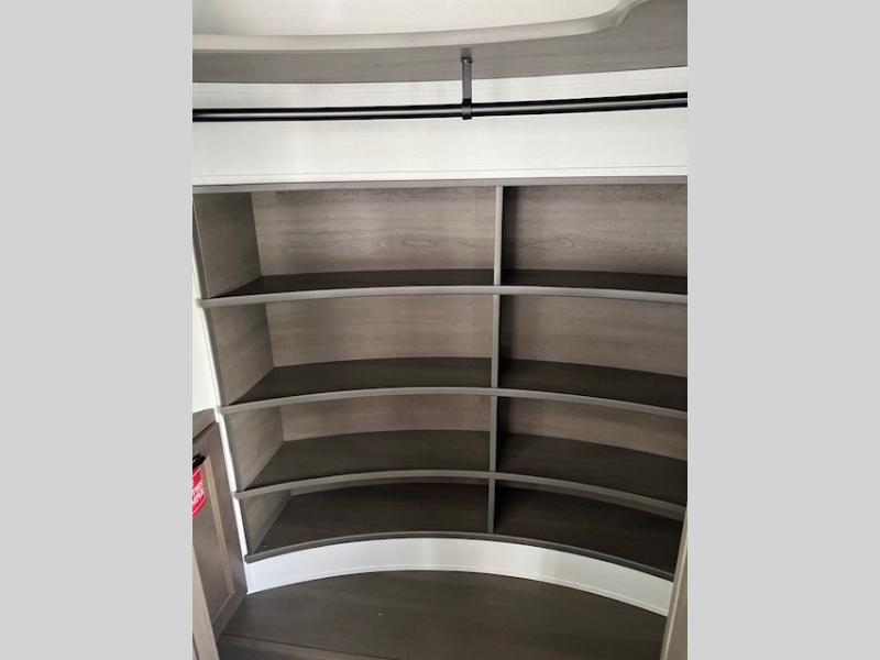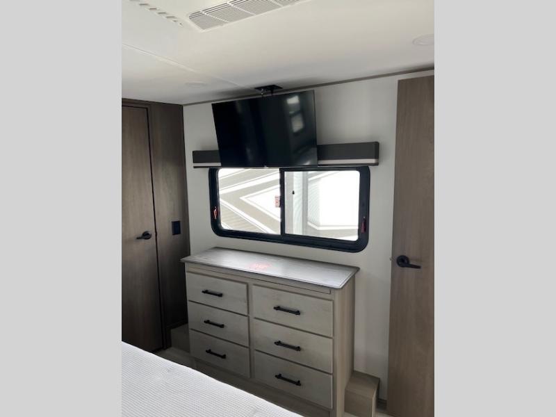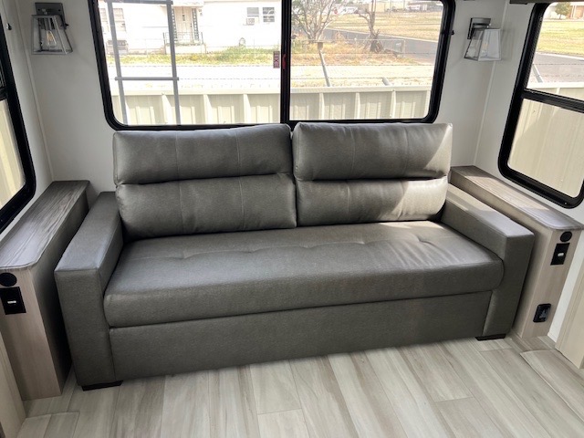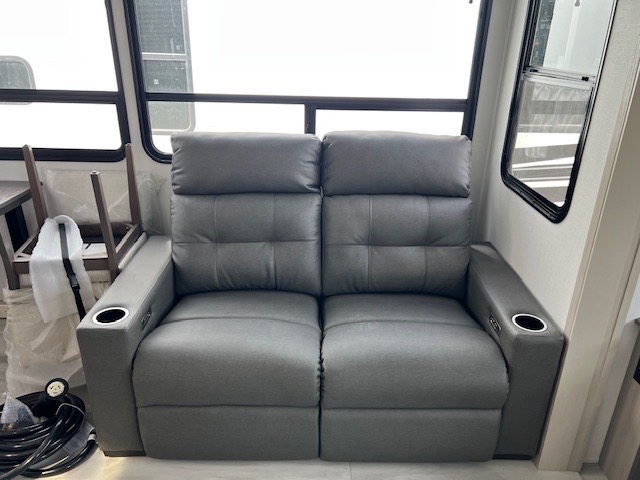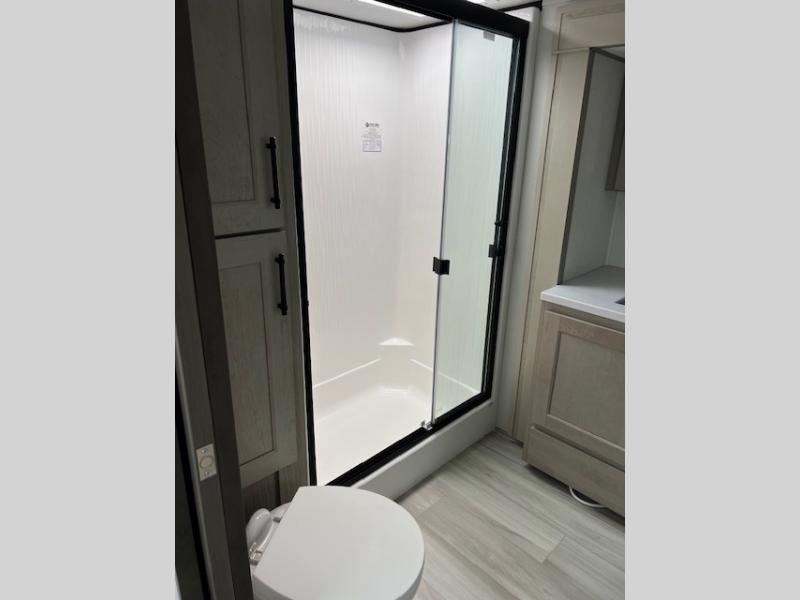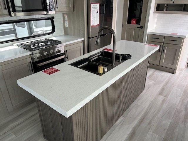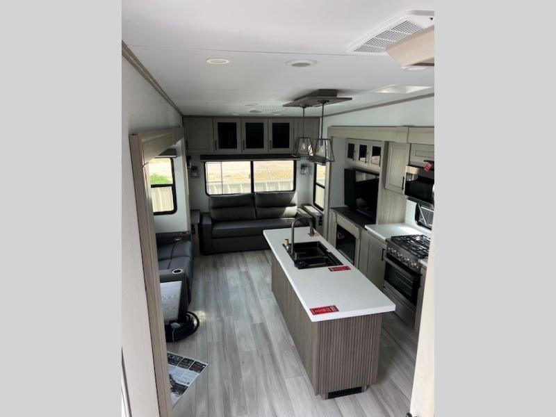 Any Grand Design Influence fifth wheel features five-sided aluminum cage construction with a walk-on roof and a fully enclosed underbelly with heated tanks and storage for all weather camping. For peace of mind, the MORryde CRE3000 Suspension system will provide safe and smooth towing, and the 101" widebody construction offers all the room you need and that is before multiple slides are fully engaged. You will appreciate the Keyed-Alike locks, slam-latch baggage doors with magnetic door catches, exterior security light, and SolidStep entry steps. On the inside, Congoleum flooring, premium roller shades for privacy, a hallway handrail for safety, and nightstands with USB ports to keep all of your electronics fully charged. You will also love the On Demand tankless water heater when showering, plus the added heat and ambiance from an electric fireplace, and so much more!