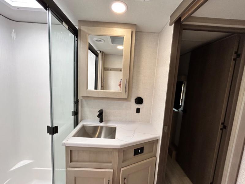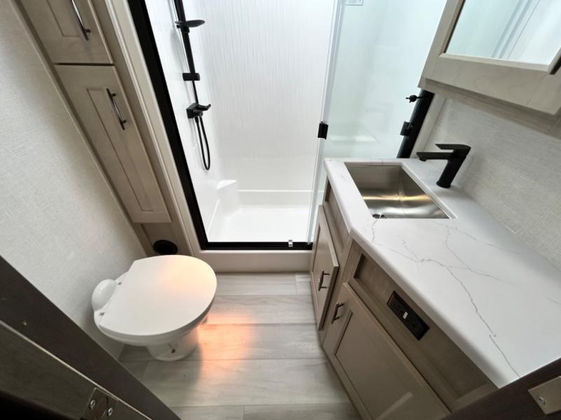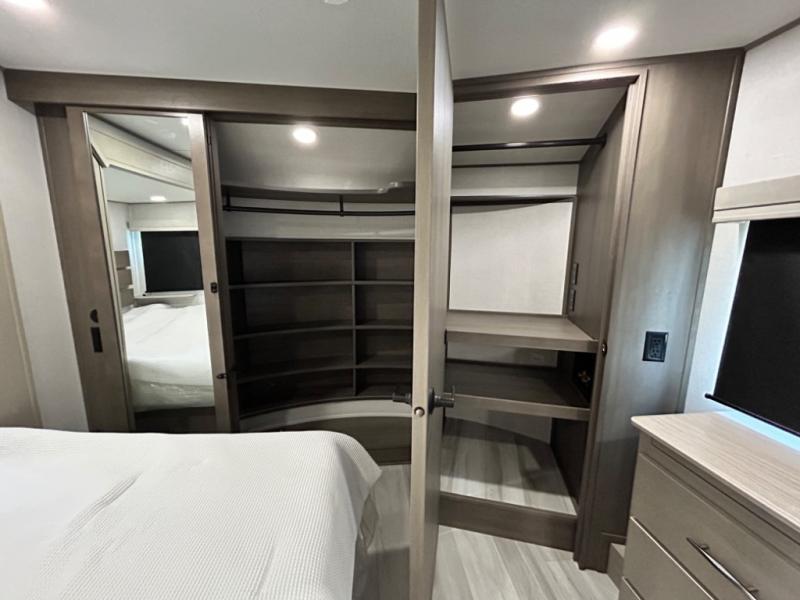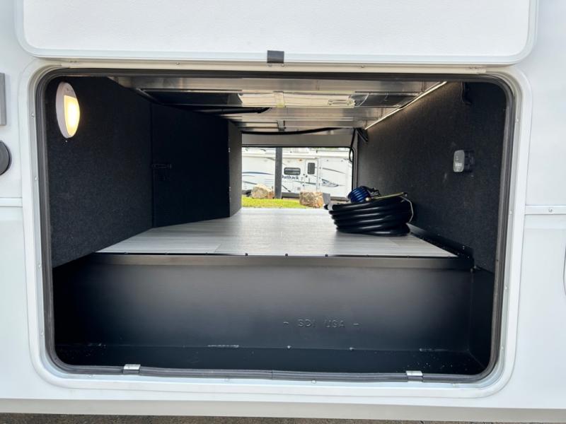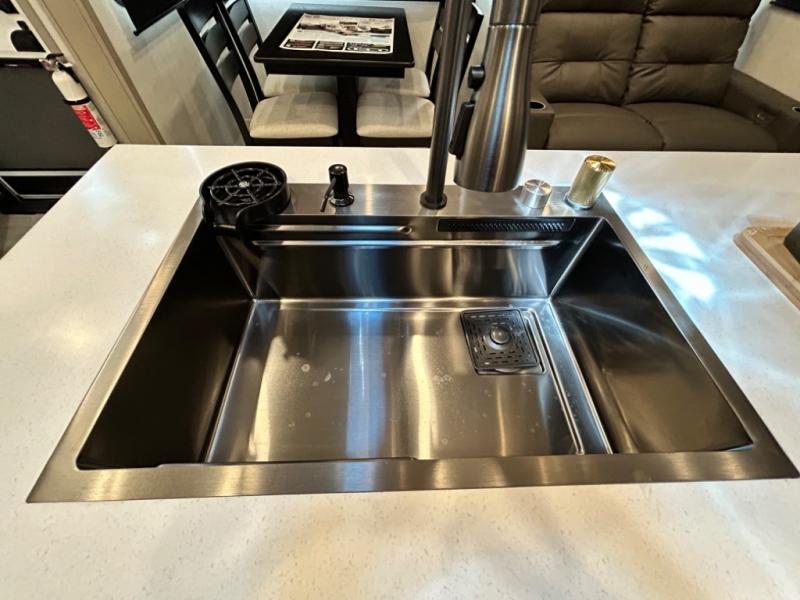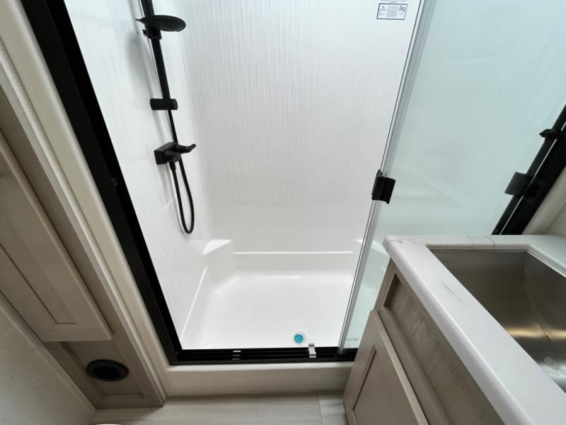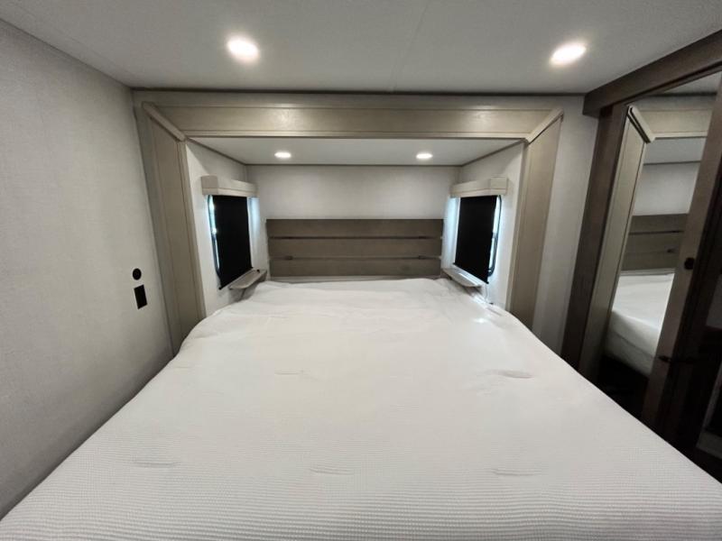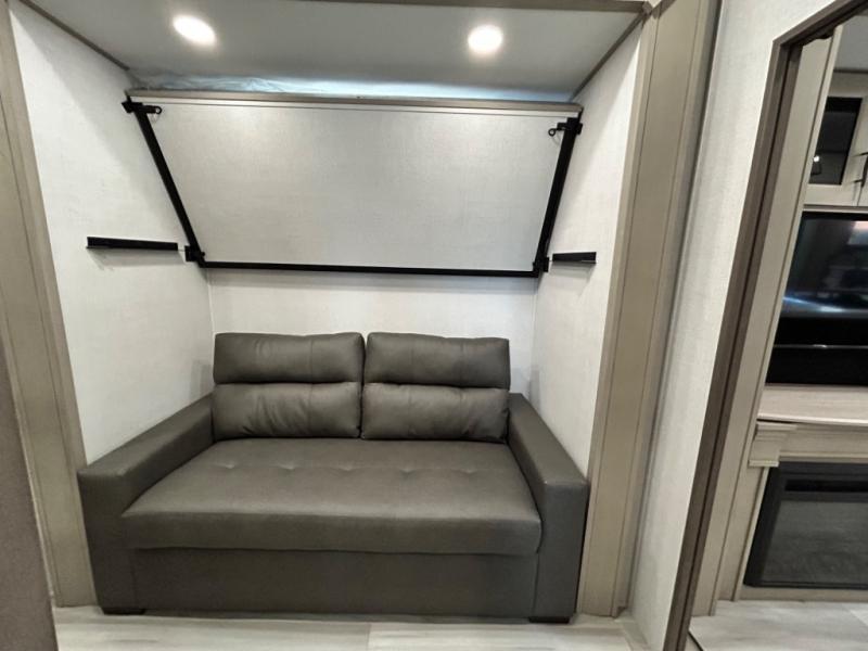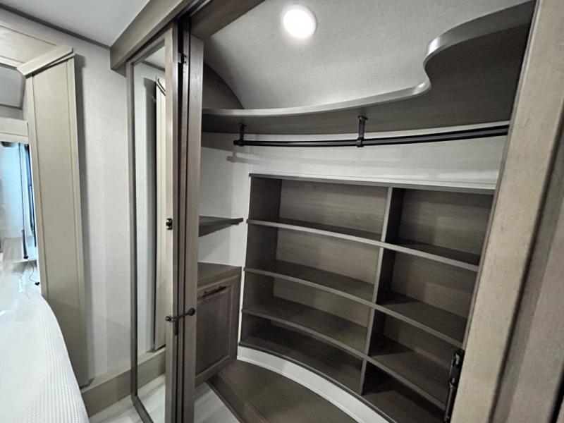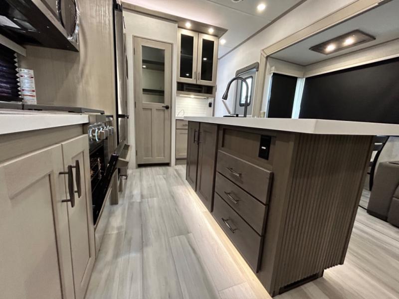 Any Grand Design Influence fifth wheel features five-sided aluminum cage construction with a walk-on roof and a fully enclosed underbelly with heated tanks and storage for all weather camping. For peace of mind, the MORryde CRE3000 Suspension system will provide safe and smooth towing, and the 101" widebody construction offers all the room you need and that is before multiple slides are fully engaged. You will appreciate the Keyed-Alike locks, slam-latch baggage doors with magnetic door catches, exterior security light, and SolidStep entry steps. On the inside, Congoleum flooring, premium roller shades for privacy, a hallway handrail for safety, and nightstands with USB ports to keep all of your electronics fully charged. You will also love the On Demand tankless water heater when showering, plus the added heat and ambiance from an electric fireplace, and so much more!