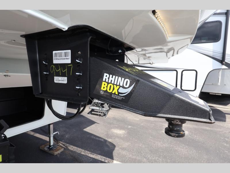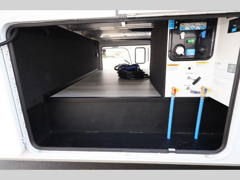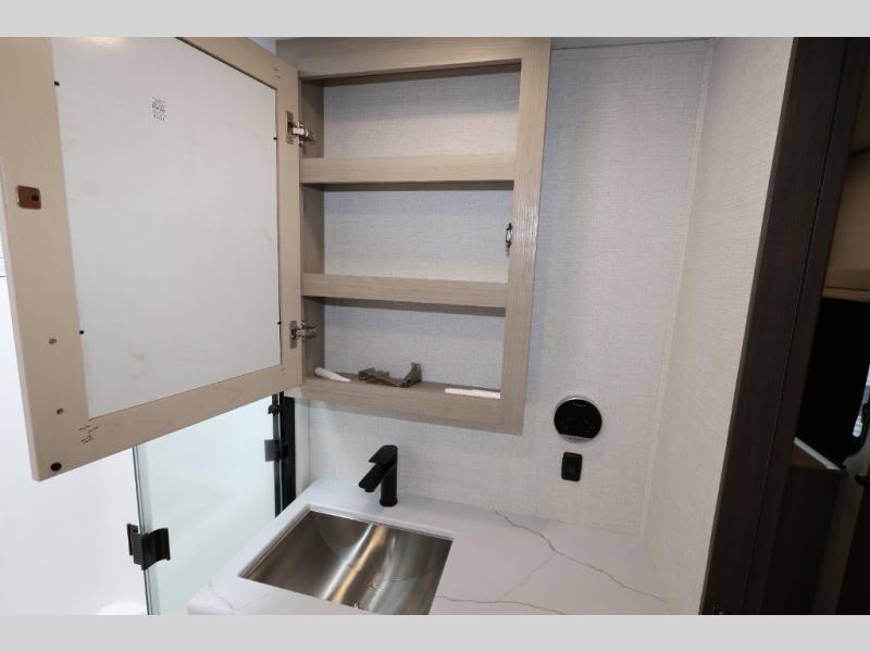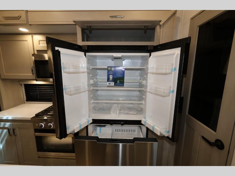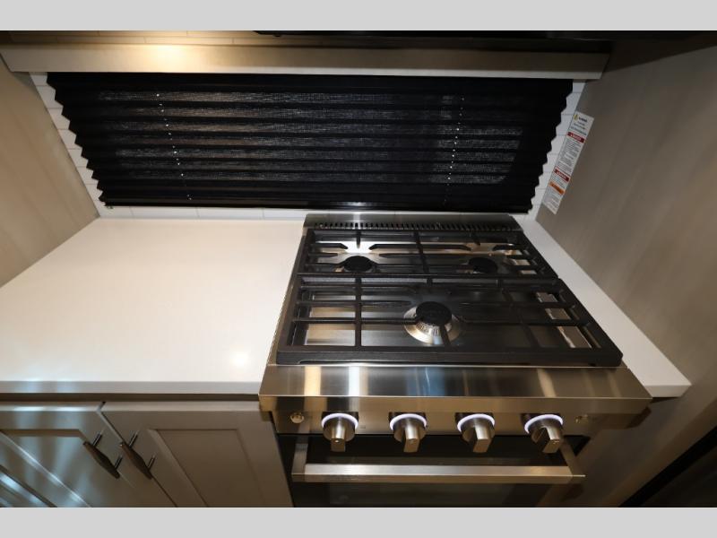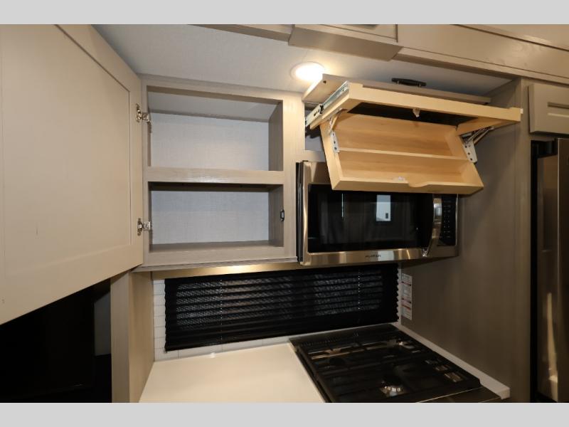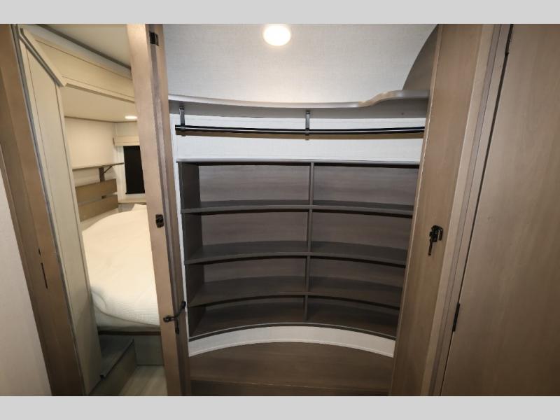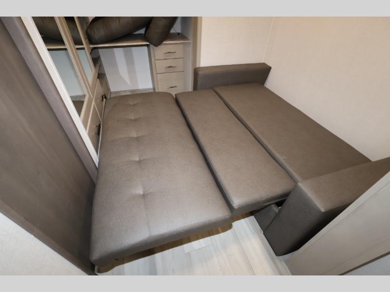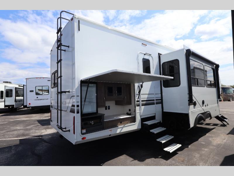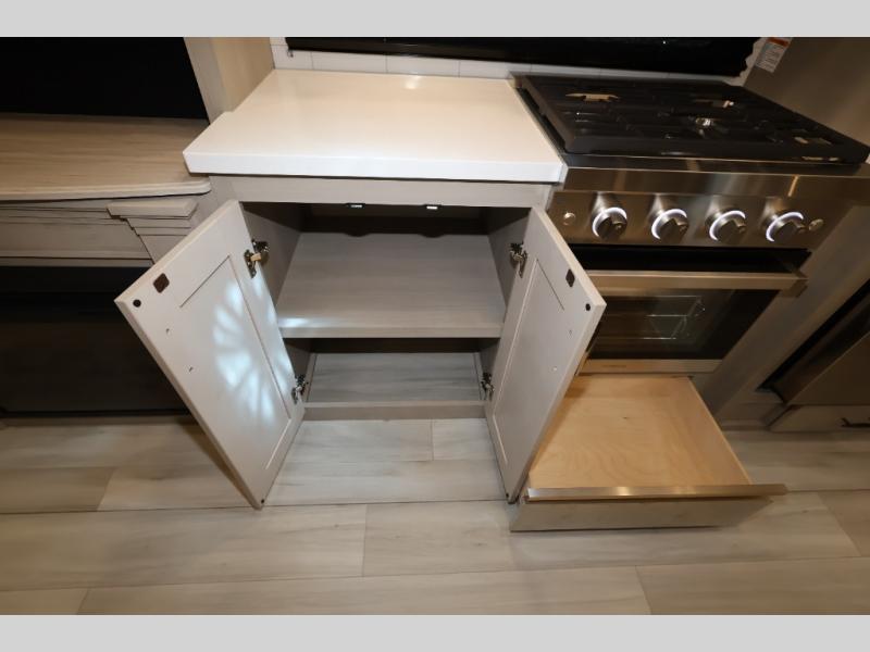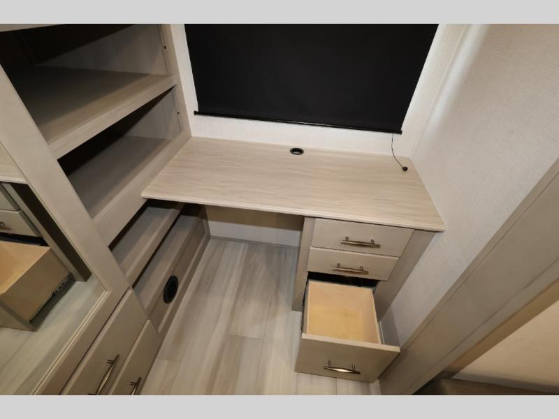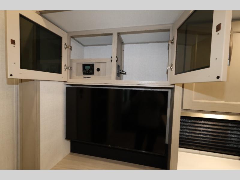 Any Grand Design Influence fifth wheel features five-sided aluminum cage construction with a walk-on roof and a fully enclosed underbelly with heated tanks and storage for all weather camping. For peace of mind, the MORryde CRE3000 Suspension system and ABS braking system will provide safe and smooth towing, and the 101" widebody construction offers all the room you need and that is before multiple slides are fully engaged. You will appreciate the keyed alike locks, slam-latch baggage doors with magnetic door catches, exterior security light, and solid surface entry steps. On the inside, Congoleum flooring, premium roller shades for privacy, a hallway handrail for safety, and nightstands with USB ports to keep all of your electronics fully charged. You will also love the On Demand tankless water heater when showering, plus the added heat and ambiance from an electric fireplace, and so much more!