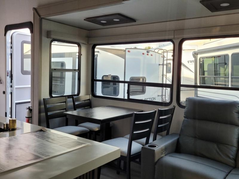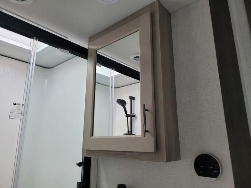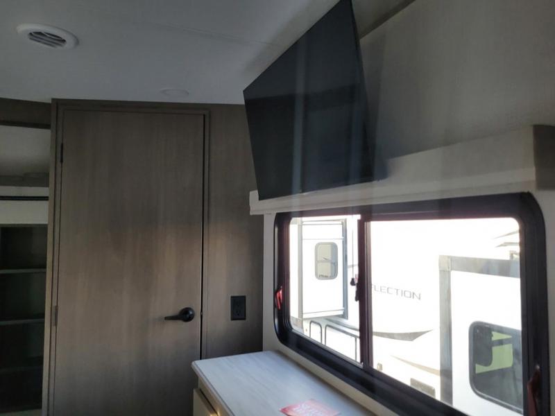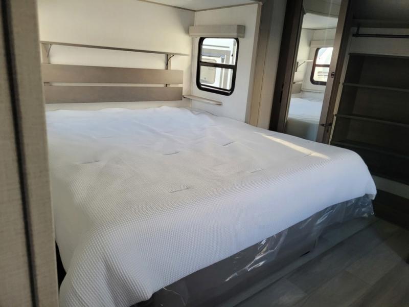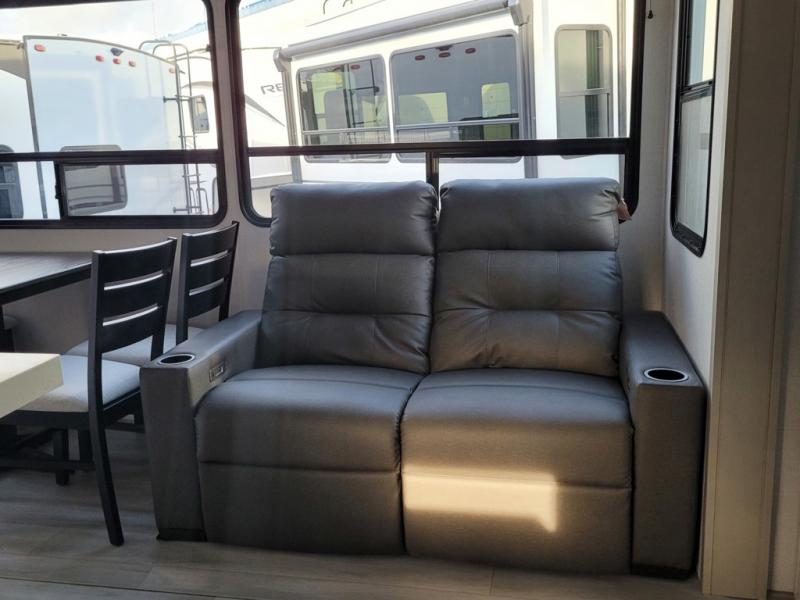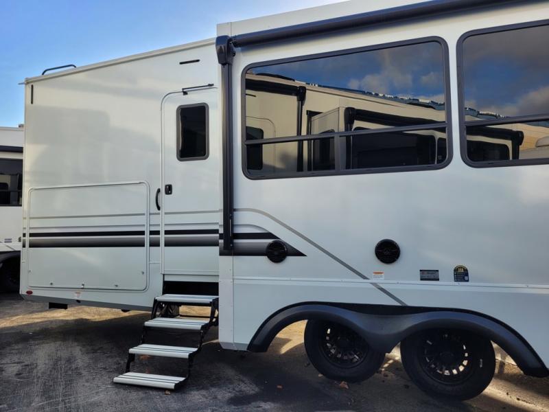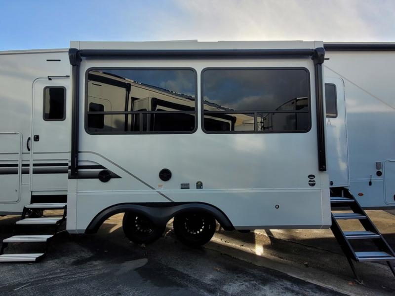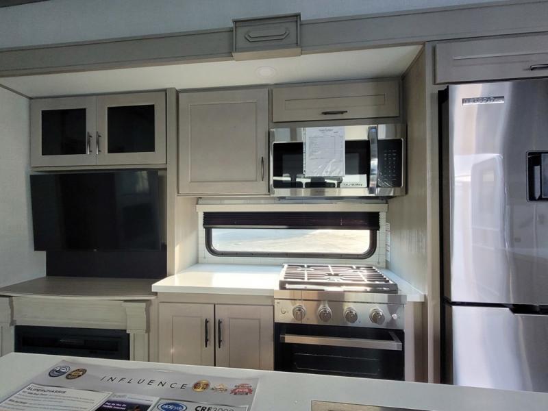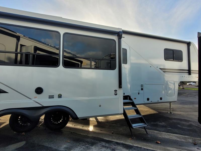 Any Grand Design Influence fifth wheel features five-sided aluminum cage construction with a walk-on roof and a fully enclosed underbelly with heated tanks and storage for all weather camping. For peace of mind, the MORryde CRE3000 Suspension system and ABS braking system will provide safe and smooth towing, and the 101" widebody construction offers all the room you need and that is before multiple slides are fully engaged. You will appreciate the keyed alike locks, slam-latch baggage doors with magnetic door catches, exterior security light, and solid surface entry steps. On the inside, Congoleum flooring, premium roller shades for privacy, a hallway handrail for safety, and nightstands with USB ports to keep all of your electronics fully charged. You will also love the On Demand tankless water heater when showering, plus the added heat and ambiance from an electric fireplace, and so much more!