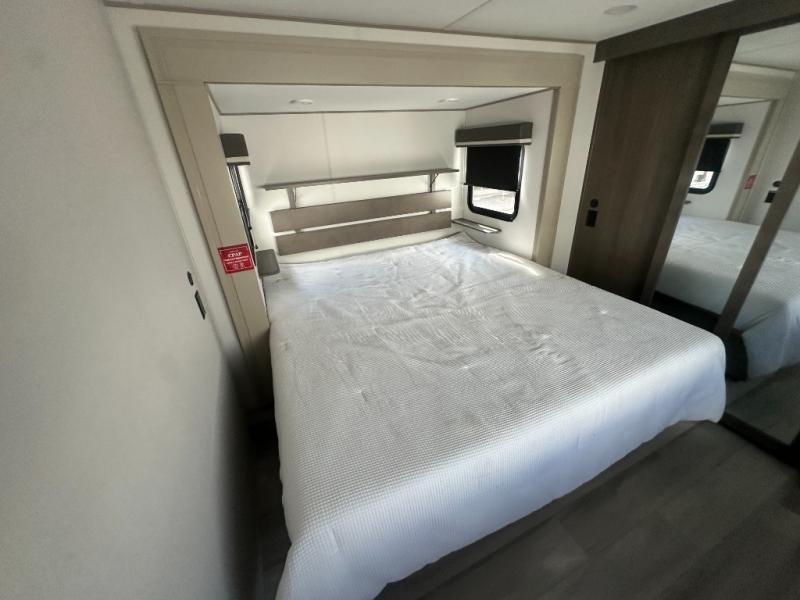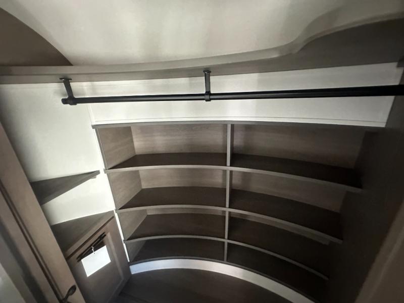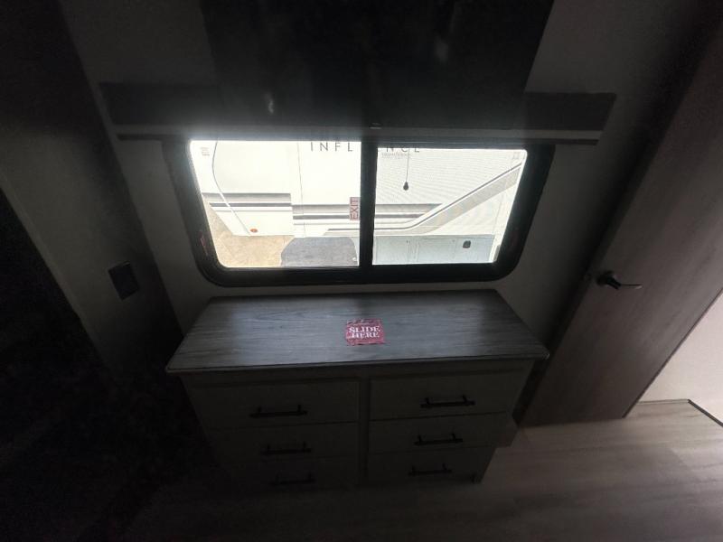 Any Grand Design Influence fifth wheel features five-sided aluminum cage construction with a walk-on roof and a fully enclosed underbelly with heated tanks and storage for all weather camping. For peace of mind, the MORryde CRE3000 Suspension system will provide safe and smooth towing, and the 101" widebody construction offers all the room you need and that is before multiple slides are fully engaged. You will appreciate the Keyed-Alike locks, slam-latch baggage doors with magnetic door catches, exterior security light, and SolidStep entry steps. On the inside, Congoleum flooring, premium roller shades for privacy, a hallway handrail for safety, and nightstands with USB ports to keep all of your electronics fully charged. You will also love the On Demand tankless water heater when showering, plus the added heat and ambiance from an electric fireplace, and so much more!
