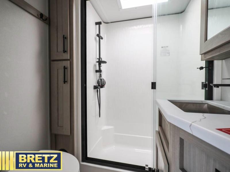 Any Grand Design Influence fifth wheel features five-sided aluminum cage construction with a walk-on roof and a fully enclosed underbelly with heated tanks and storage for all weather camping. For peace of mind, the MORryde CRE3000 Suspension system will provide safe and smooth towing, and the 101" widebody construction offers all the room you need and that is before multiple slides are fully engaged. You will appreciate the Keyed-Alike locks, slam-latch baggage doors with magnetic door catches, exterior security light, and SolidStep entry steps. On the inside, Congoleum flooring, premium roller shades for privacy, a hallway handrail for safety, and nightstands with USB ports to keep all of your electronics fully charged. You will also love the On Demand tankless water heater when showering, plus the added heat and ambiance from an electric fireplace, and so much more!