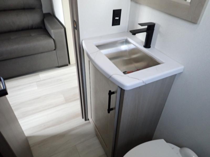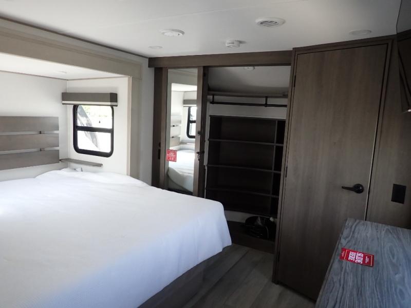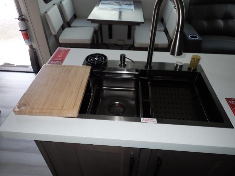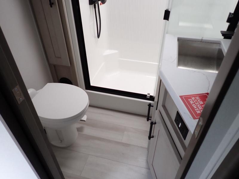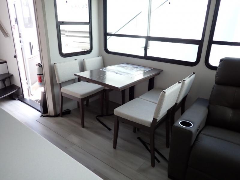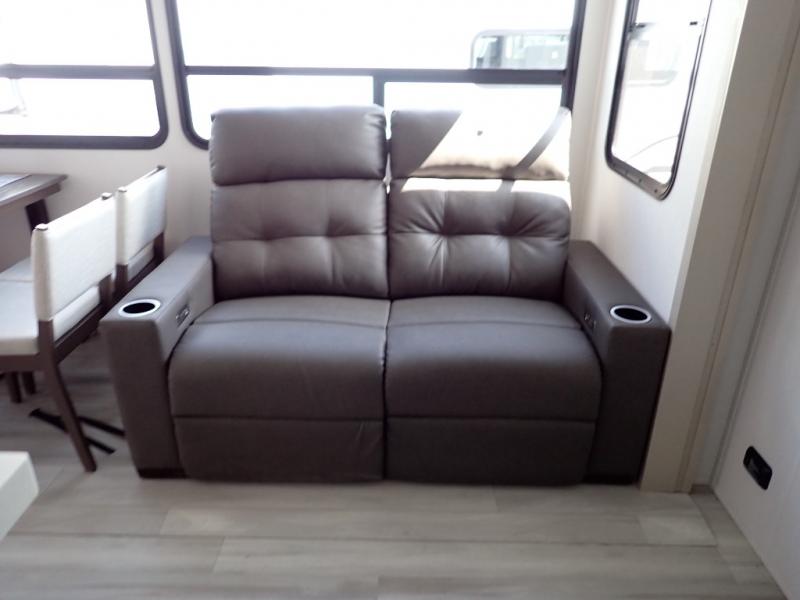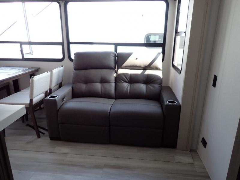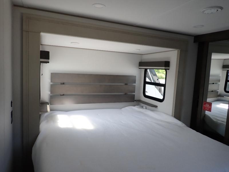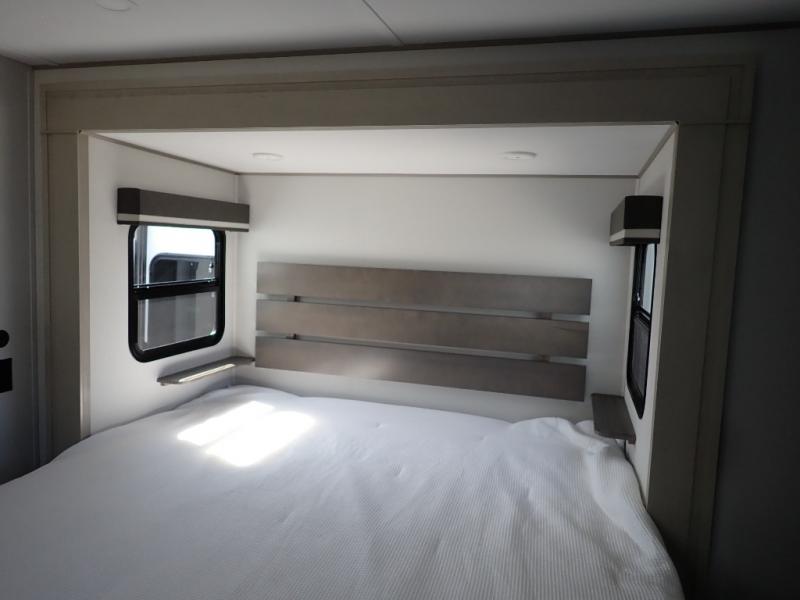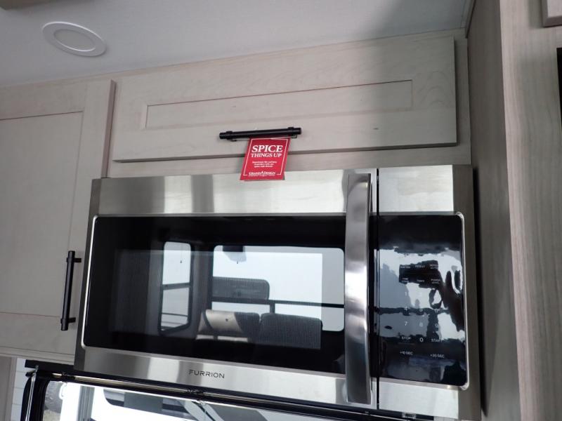 Any Grand Design Influence fifth wheel features five-sided aluminum cage construction with a walk-on roof and a fully enclosed underbelly with heated tanks and storage for all weather camping. For peace of mind, the MORryde CRE3000 Suspension system will provide safe and smooth towing, and the 101" widebody construction offers all the room you need and that is before multiple slides are fully engaged. You will appreciate the Keyed-Alike locks, slam-latch baggage doors with magnetic door catches, exterior security light, and SolidStep entry steps. On the inside, Congoleum flooring, premium roller shades for privacy, a hallway handrail for safety, and nightstands with USB ports to keep all of your electronics fully charged. You will also love the On Demand tankless water heater when showering, plus the added heat and ambiance from an electric fireplace, and so much more!