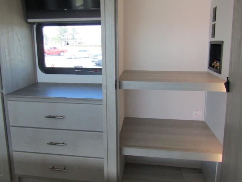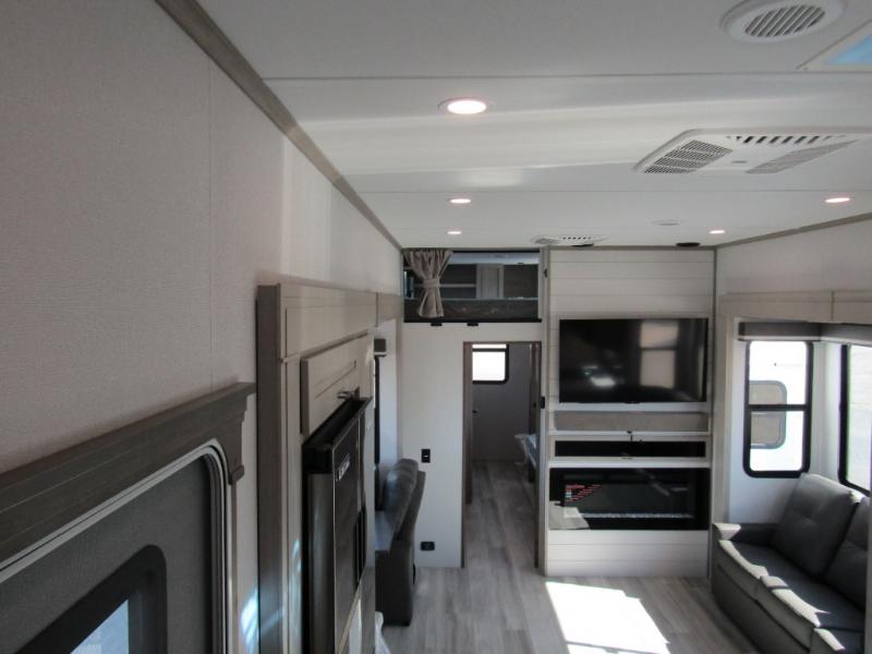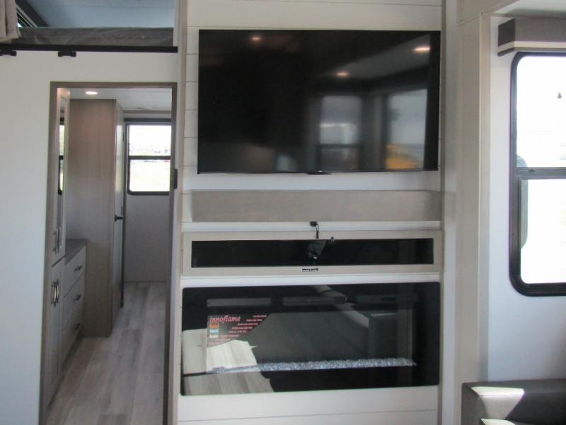 Influence Residential Living Package • Peace of Mind Package • Weather-Tek Package • Max-Built Construction Package • Electric Fireplace • 12V Tank Heaters • Upgraded Cooper H-Rated Tires w/17.5" Wheels • 2nd A/C (15K BTU) • 16 cu. ft. 12V Refrigerator (w/Inverter Prep, 330W Solar Panel, Bluetooth Module & Dual Dock Ports) • TravlFi On-Board WiFi Ready • 2nd Patio Awning • 6-Point Auto Leveling System • King Bed Upgrade • 3rd A/C (15K BTU w/Heat Pump) • Generator Prep • 7K Axles w/ABS Brakes • SafeRide RV Roadside Assistance • Winterization • RVIA Seal