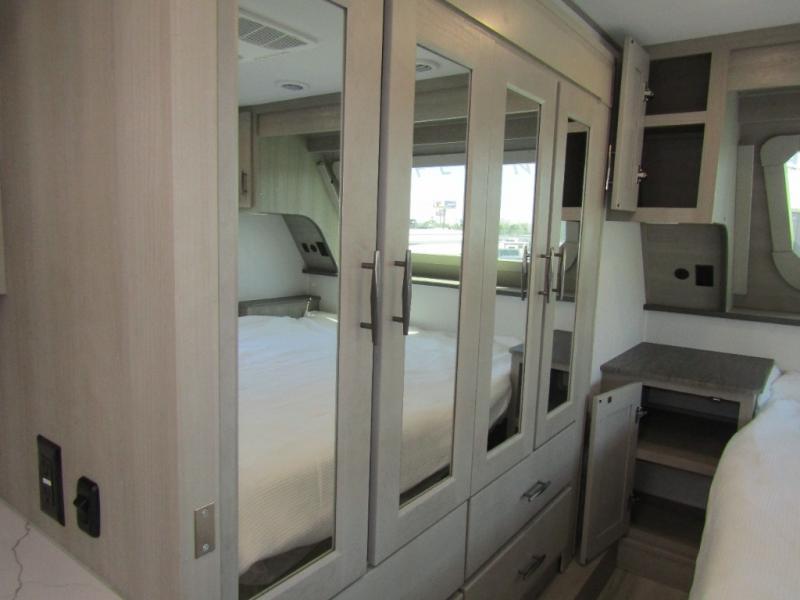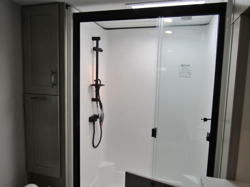 Setup and travel are simple with the 6-point auto leveling system, 7K axles with ABS brakes, and upgraded Cooper H-rated tires. Generator prep, TravlFi On-Board WiFi, and solar power give you freedom to explore off-grid. SolidStep quad entry, keyed-alike locks, and a Max-Built construction package add convenience and peace of mind wherever the road takes you.