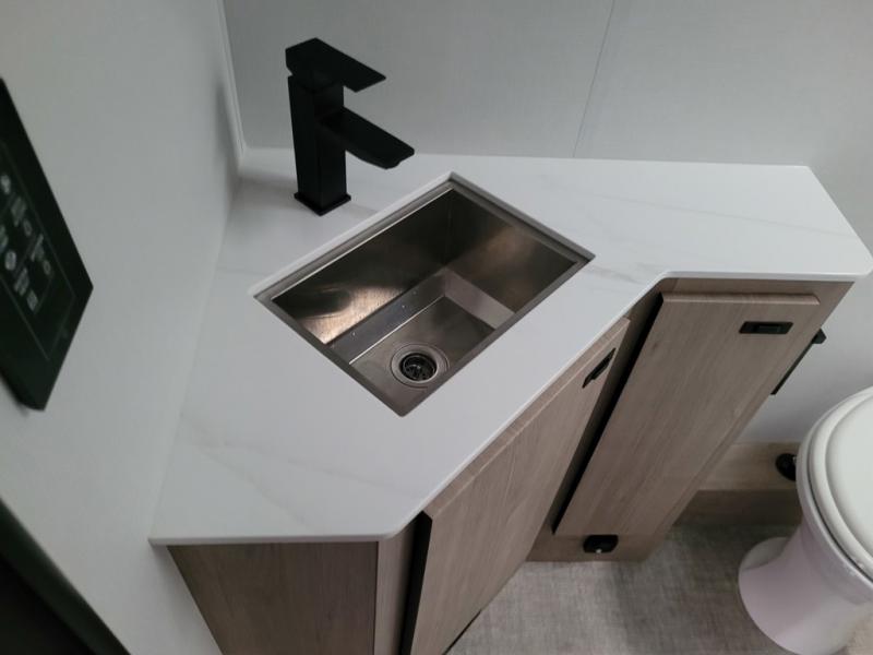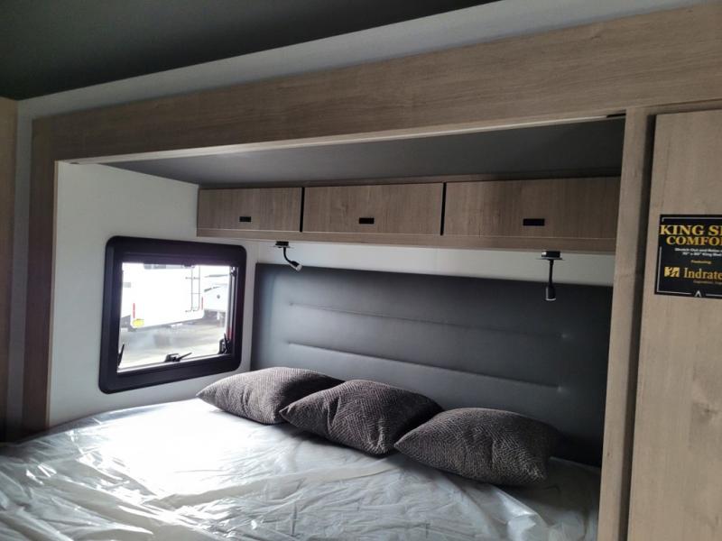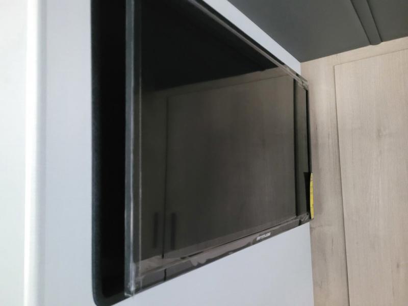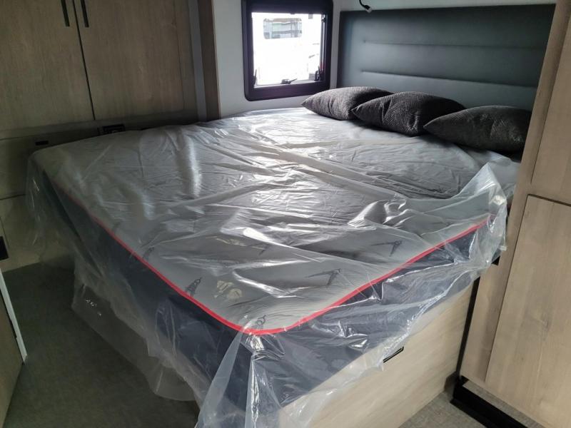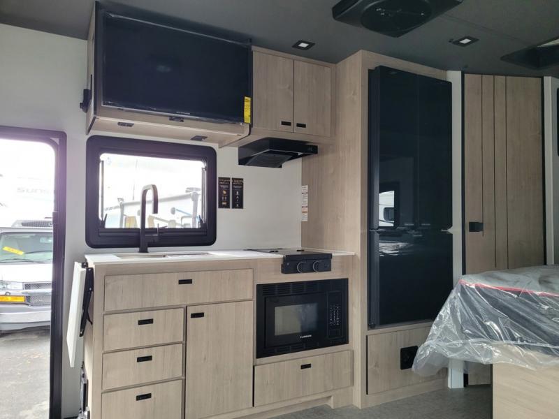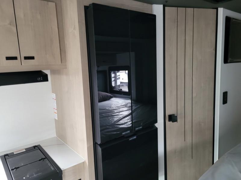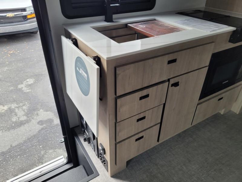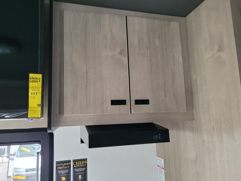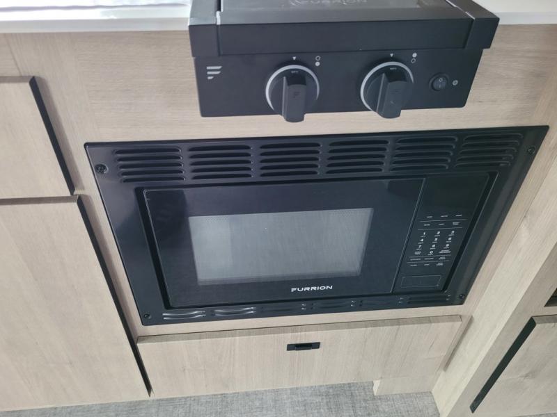 Head to your local state park or across the states in this spacious coach that sleeps two. Once you arrive at your destination, you can prepare a meal with the full kitchen amenities, including a cooktop, microwave oven, and a refrigerator. The power theater seating provides a place to relax, or you can choose the optional booth dinette if you need additional sleeping space. A full bath will let you clean up after a day outdoors, and the 70" x 80" king bed within the full-wall slide is sure to bring comfort. This model also includes a pantry beside the theater seats for snacks and a bedroom wardrobe to keep your clothes wrinkle-free!