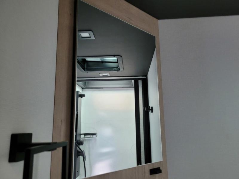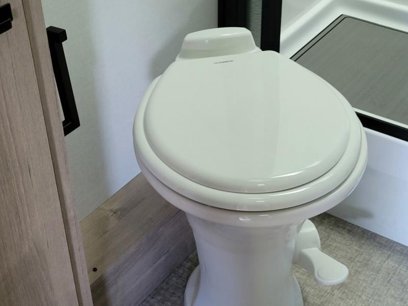 Head to your local state park or across the states in this spacious coach. Once you arrive at your destination, you can prepare a meal with the full kitchen amenities, including a cooktop, microwave oven, and a refrigerator. The power theater seating provides a place to relax, or you can choose the optional booth dinette if you need additional sleeping space. A full bath will let you clean up after a day outdoors, and the 70" x 80" king bed within the full-wall slide is sure to bring comfort. This model also includes a pantry beside the theater seats for snacks and a bedroom wardrobe to keep your clothes wrinkle-free!