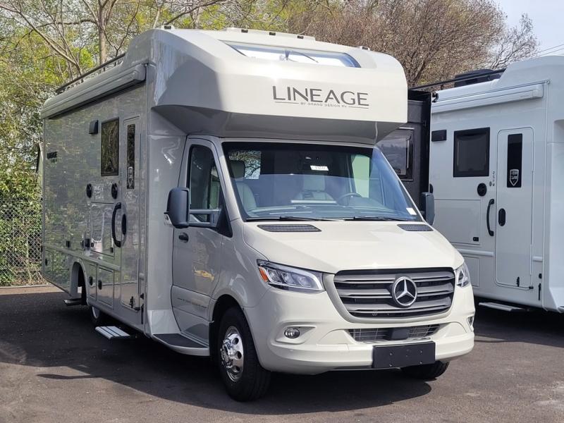Grand Design's first motorized coach, the Lineage Series M is coming to you with luxurious features at a great value. This Class C diesel motorhome sits on a Mercedes-Benz sprinter chassis for quality and performance you can trust. True to Grand Design's foundation, the Lineage includes interior comforts, durable construction, innovative features, and attention to detail. The Series M Package includes natural teak wood grain, a Lineage Suspension Package, and more. There is also a Blackout Package with black aluminum wheels, a Chromeout Package with chrome aluminum wheels, plus additional packages to enhance your travel experience!