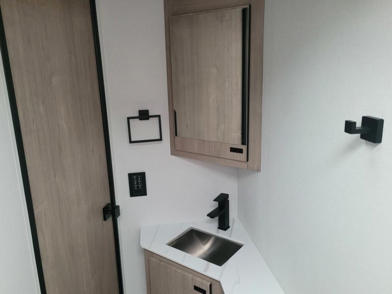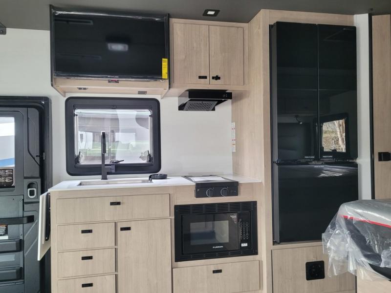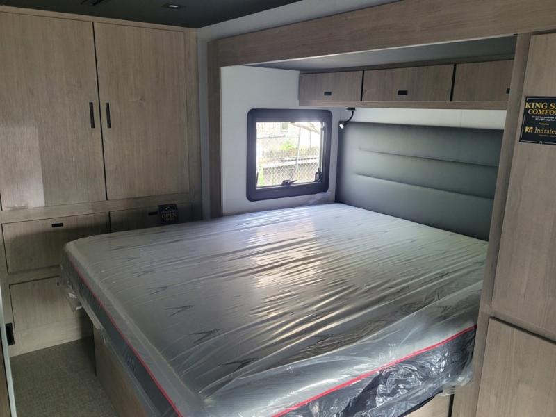 Head to your local state park or across the states in this spacious coach. Once you arrive at your destination, you can prepare a meal with the full kitchen amenities, including a cooktop, microwave oven, and a refrigerator. The power theater seating provides a place to relax, or you can choose the optional booth dinette if you need additional sleeping space. A full bath will let you clean up after a day outdoors, and the 70" x 80" king bed within the full-wall slide is sure to bring comfort. This model also includes a pantry beside the theater seats for snacks and a bedroom wardrobe to keep your clothes wrinkle-free!