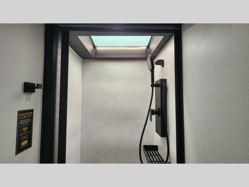Residential-Style Bath – Large shower, skylight, and premium fixtures