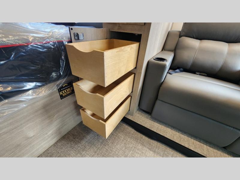 Spacious Living Area – Power theater seating, convertible dinette, and panoramic windows