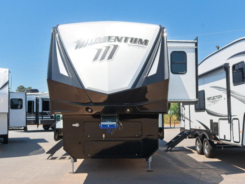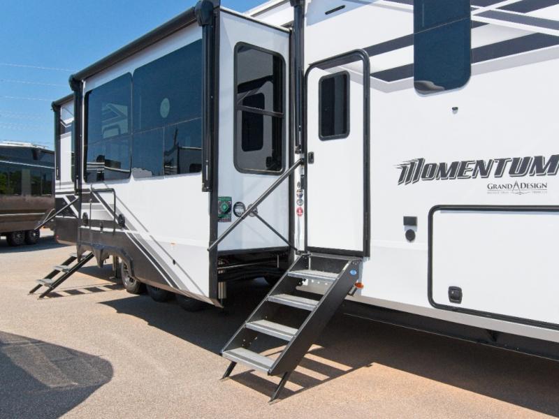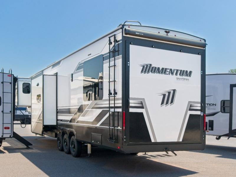 Load up your toys, clothes, and food, and embark on your next adventure with the Grand Design Momentum 397THS. This fifth wheel is designed for smooth towing to your campsite, featuring a Fast Ramp rear ramp door, Ram-Air garage vents on both sides, and 2,500 lb. rated flush-mount tie-downs to keep your toys secure.