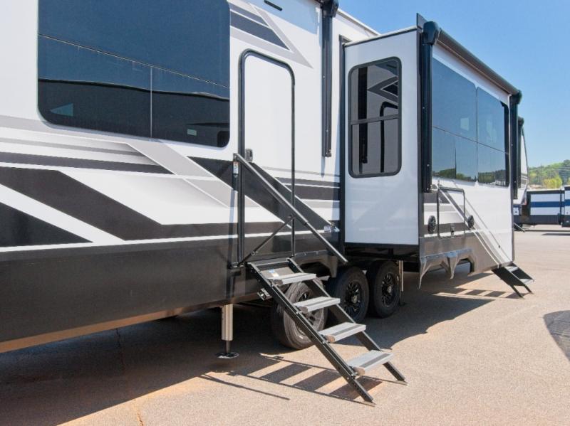 The Momentum fifth wheel toy haulers by Grand Design are perfect for year-round travel with your off-road toys. They feature superior construction with a thermal roof design, full-laminated walls, and a triple insulated garage floor. The MORryde CRE3000 suspension system, rubber pin box, and upgraded axle hangers ensure smooth towing.