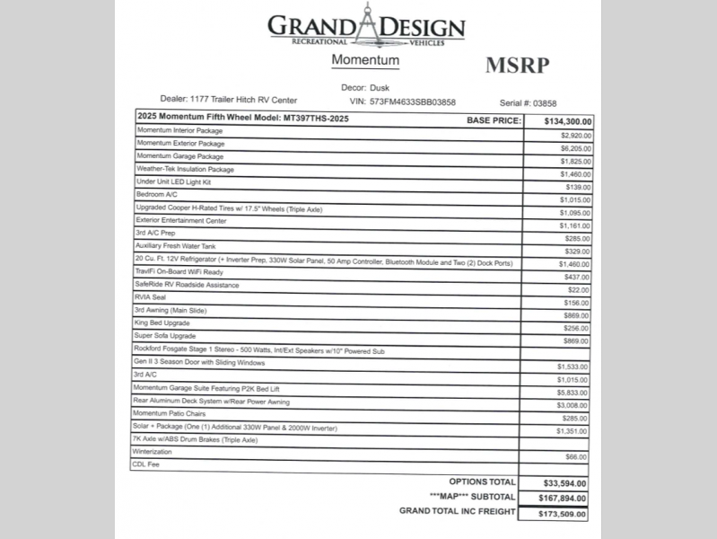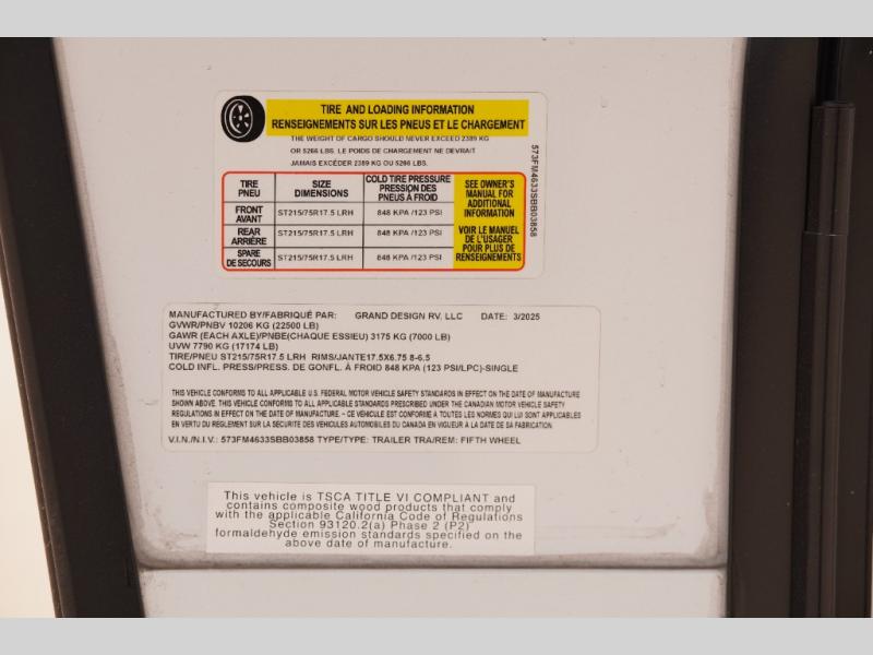 New 2025 Grand Design Momentum 397THS Toy Hauler Fifth Wheel
