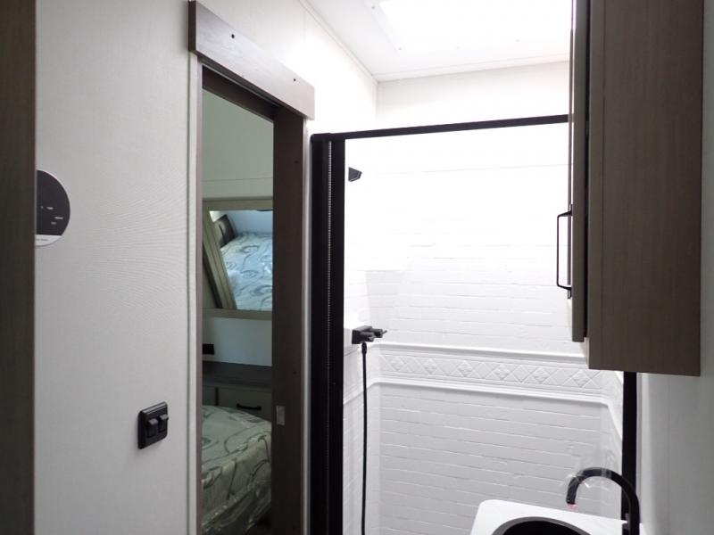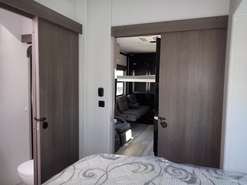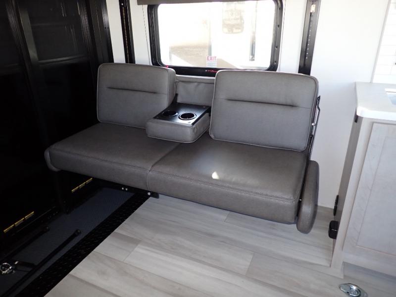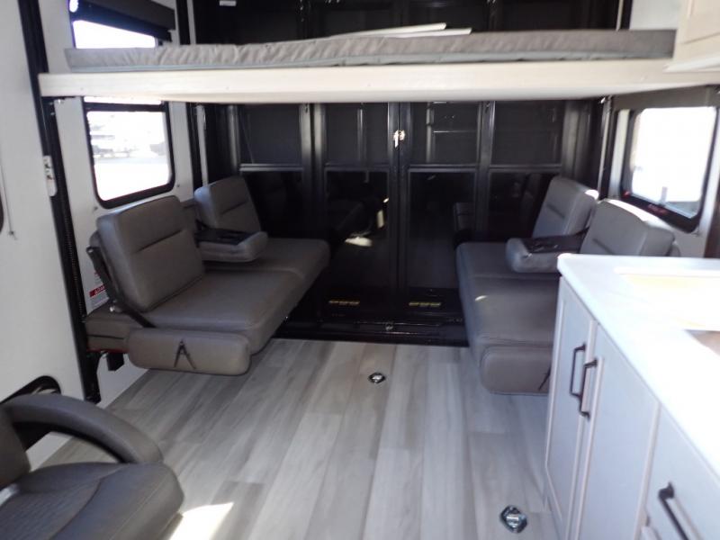 You don't have to rough it with all the amenities found in this Momentum G-Class toy hauler including your own master suite with a walk-around queen bed slide and private access into the dual-entry bathroom. The kids or your friends can sleep on the Happi-Jac rollover sofas with an optional top bed, and the Euro chairs can become the waiting area for the next rider. Keep the party going all weekend long with your very own fuel station and the 19' power awning. Come see why this model will fit perfectly into your off-road lifestyle!