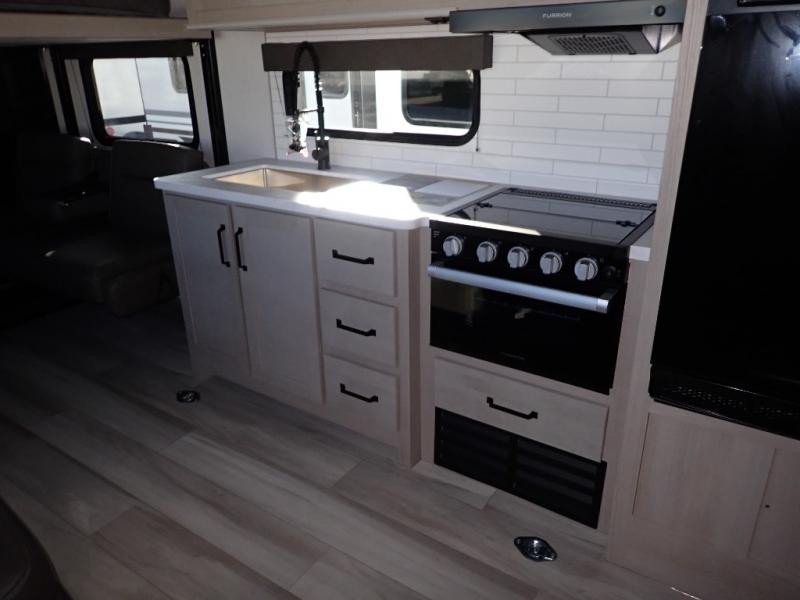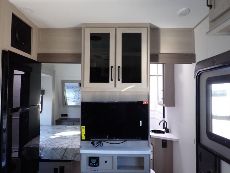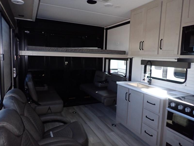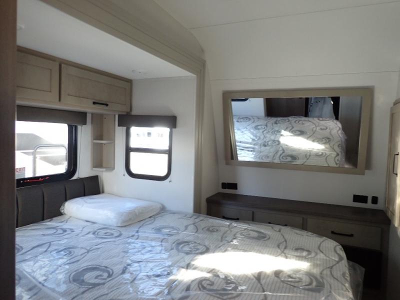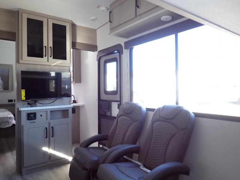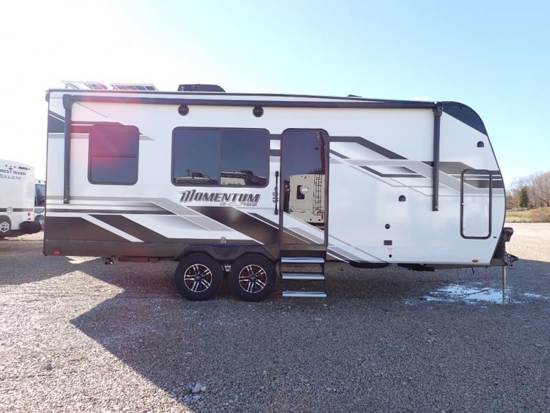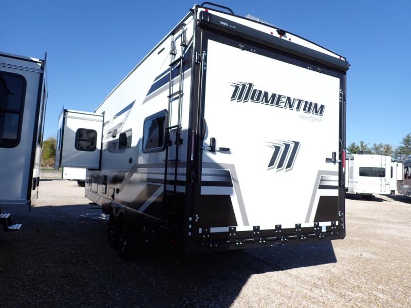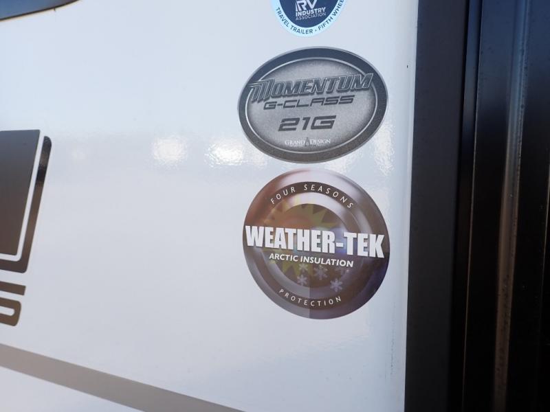 Are you looking for adventure and fun? The Momentum G-Class toy hauler by Grand Design will help you find it! You can explore during any season you choose with the Insulation Package that includes a heated and enclosed underbelly with suspended tanks, a high-capacity furnace, a moisture barrier floor enclosure, and cabinet-mounted heat ducts. Each model includes a fuel station with an interior and exterior gauge, a dovetail rear rend, and 2,500-LB tie-downs anchored into the chassis. Throughout the Momentum G-Class interior, you'll enjoy many comfortable features like large panoramic windows, a shower skylight, USB chargers in the bedroom, and residential cabinetry.