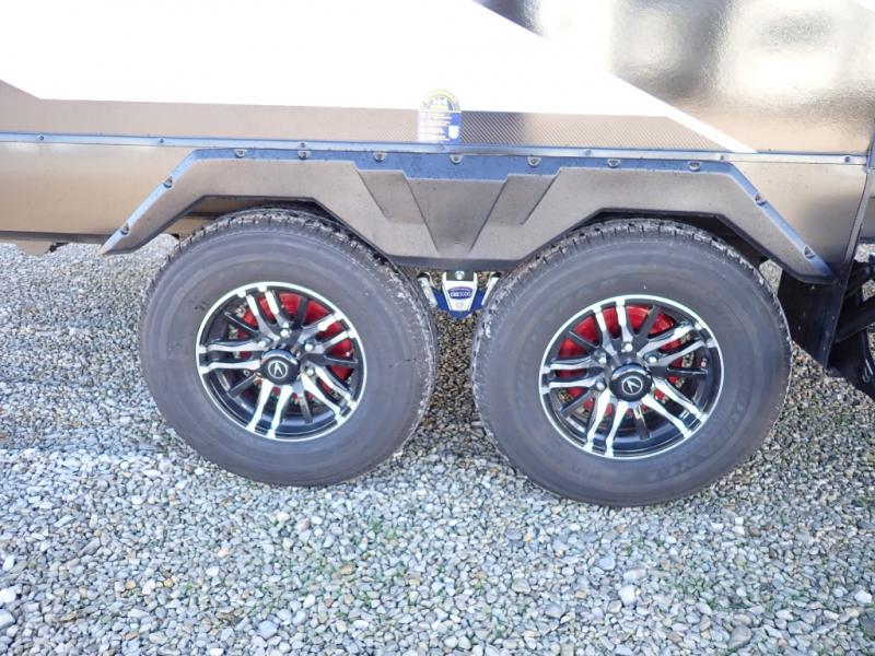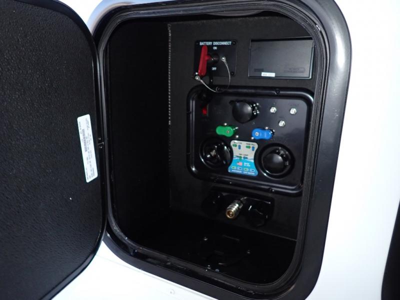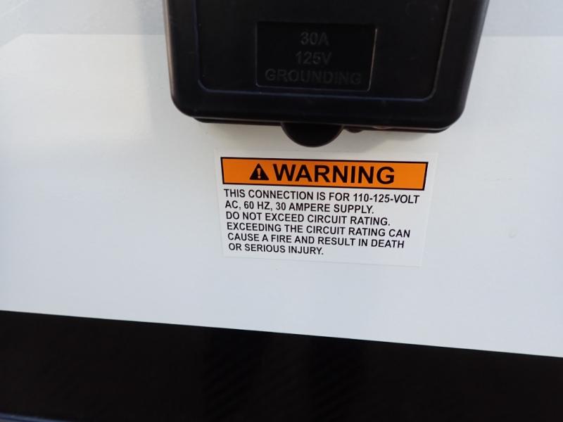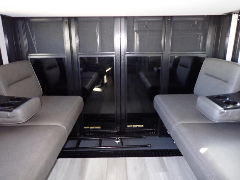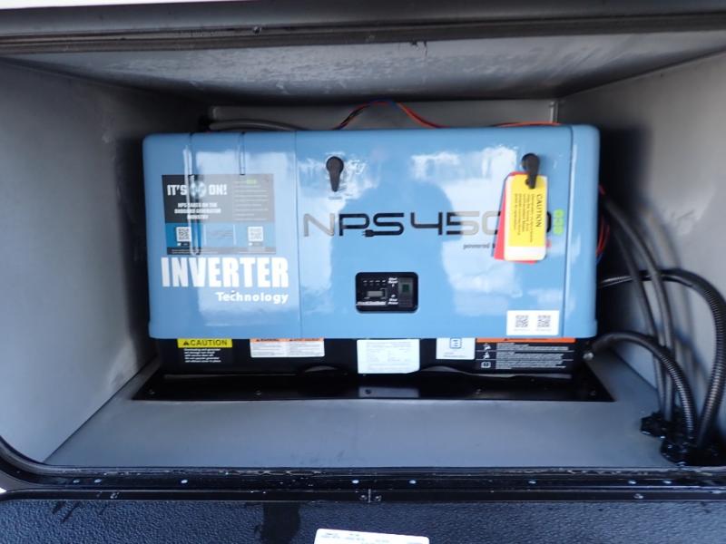 Optioned with: 3 Season Garage Doors, 8 Cubic ft 12 Volt Fridge, Rear Deck, Solar + Package, and 4500 Watt Yamaha NPS Generator.
