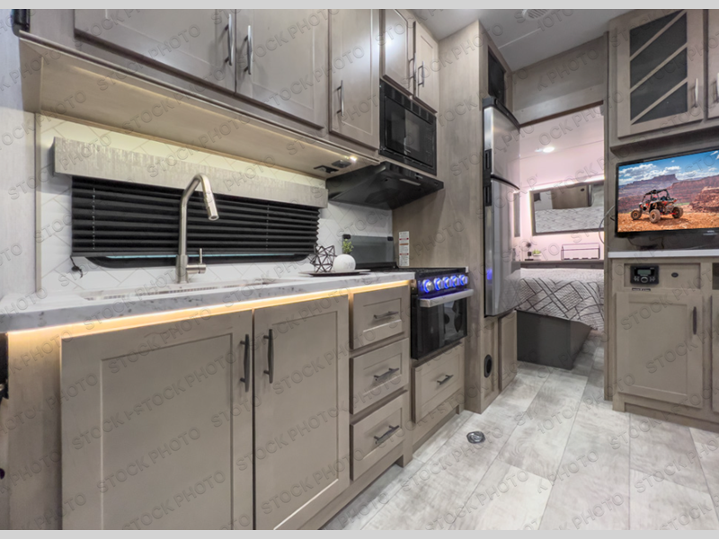 Are you looking for adventure and fun? The Momentum G-Class toy hauler by Grand Design will help you find it! You can explore during any season you choose with the Insulation Package that includes a heated and enclosed underbelly with suspended tanks, a high-capacity furnace, a moisture barrier floor enclosure, and cabinet-mounted heat ducts. Each model includes a fuel station with an interior and exterior gauge, a dovetail rear rend, and 2,500-LB tie-downs anchored into the chassis. Throughout the Momentum G-Class interior, you'll enjoy many comfortable features like large panoramic windows, a shower skylight, USB chargers in the bedroom, and residential cabinetry.