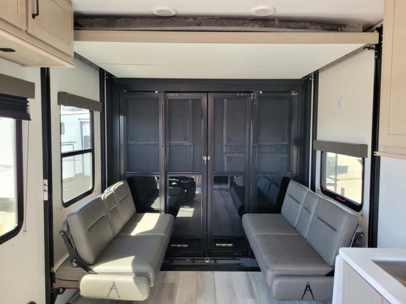 Are you looking for adventure and fun? The Momentum G-Class toy hauler by Grand Design will help you find it! You can explore during any season you choose with the Insulation Package that includes a heated and enclosed underbelly with suspended tanks, a high-capacity furnace, a moisture barrier floor enclosure, and cabinet-mounted heat ducts. Each model includes a fuel station with an interior and exterior gauge, a dovetail rear rend, and 2,500-LB tie-downs anchored into the chassis. Throughout the Momentum G-Class interior, you'll enjoy many comfortable features like large panoramic windows, a shower skylight, USB chargers in the bedroom, and residential cabinetry.