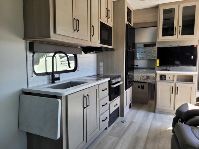 It's time to load up your family and off-road toys to enjoy the great outdoors at the speed you like with this Momentum G-Class toy hauler. Once at your destination, unload the toys from the 13' 6" of cargo space, put out the two slides, and start having fun. You can cook meals in the spacious kitchen area with extra counter space and relax in the Euro chairs or on the rollover sofas with a table. You can even cook at the outside kitchen underneath the 19' power awning.