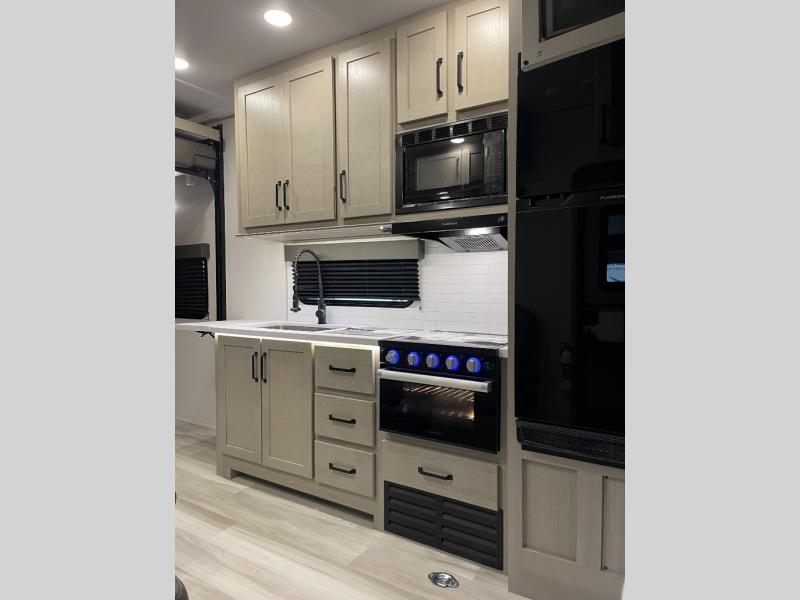 Are you looking for adventure and fun? The Momentum G-Class toy hauler by Grand Design will help you find it! You can explore during any season you choose with the Insulation Package that includes a heated and enclosed underbelly with suspended tanks, a high-capacity furnace, a moisture barrier floor enclosure, and cabinet-mounted heat ducts. Each model includes a fuel station with an interior and exterior gauge, a dovetail rear rend, and 2,500-LB tie-downs anchored into the chassis. Throughout the Momentum G-Class interior, you'll enjoy many comfortable features like large panoramic windows, a shower skylight, USB chargers in the bedroom, and residential cabinetry.