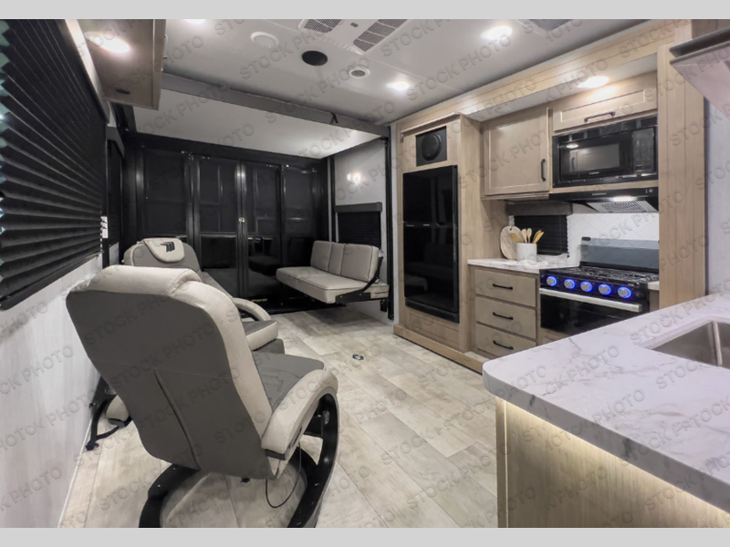 It's time to load up your family and off-road toys to enjoy the great outdoors at the speed you like with this Momentum G-Class toy hauler. Once at your destination, unload the toys from the 13' 6" of cargo space, put out the two slides, and start having fun. You can cook meals in the spacious kitchen area with extra counter space and relax in the Euro chairs or on the rollover sofas with a table. You can even cook at the outside kitchen underneath the 19' power awning.