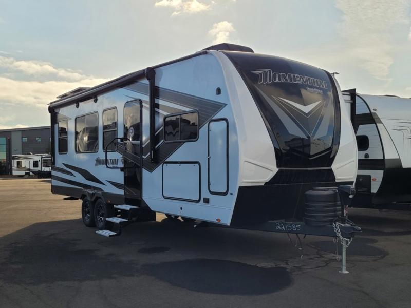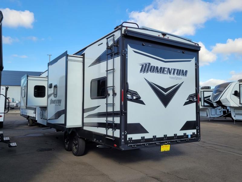 Are you looking for adventure and fun? The Momentum G-Class toy hauler by Grand Design will help you find it! You can explore during any season you choose with the Insulation Package that includes a heated and enclosed underbelly with suspended tanks, a high-capacity furnace, a moisture barrier floor enclosure, and cabinet-mounted heat ducts. Each model includes a fuel station with an interior and exterior gauge, a dovetail rear rend, and 2,500-LB tie-downs anchored into the chassis. Throughout the Momentum G-Class interior, you'll enjoy many comfortable features like large panoramic windows, a shower skylight, USB chargers in the bedroom, and residential cabinetry.